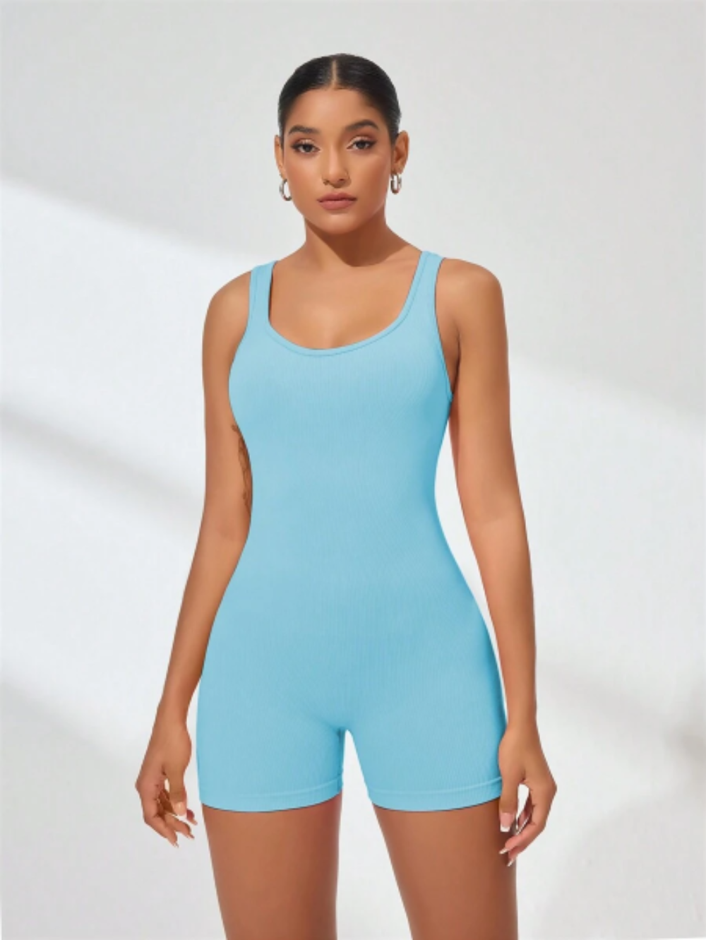 Fashionable Fitted Yoga Jumpsuit With Scoop Neckline