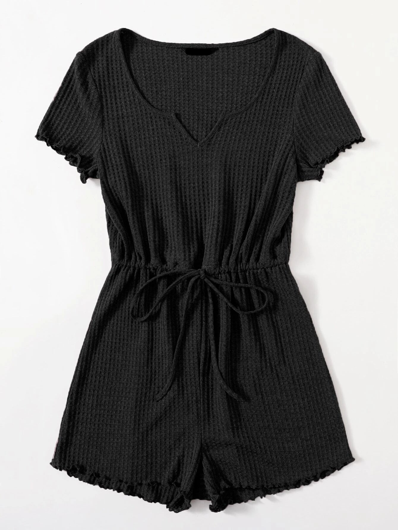 Short Ribbed Knit Romper With Drawstring For Soft And Comfy Fit