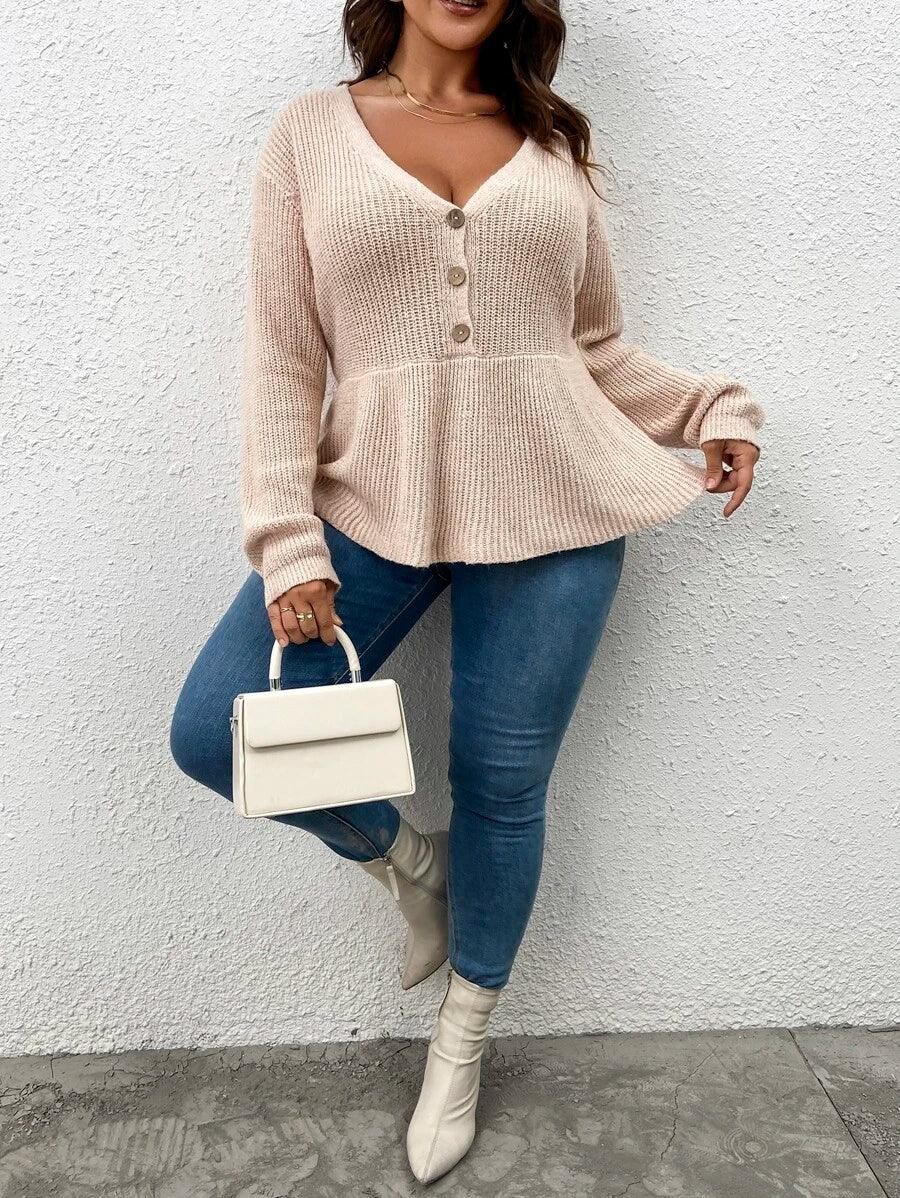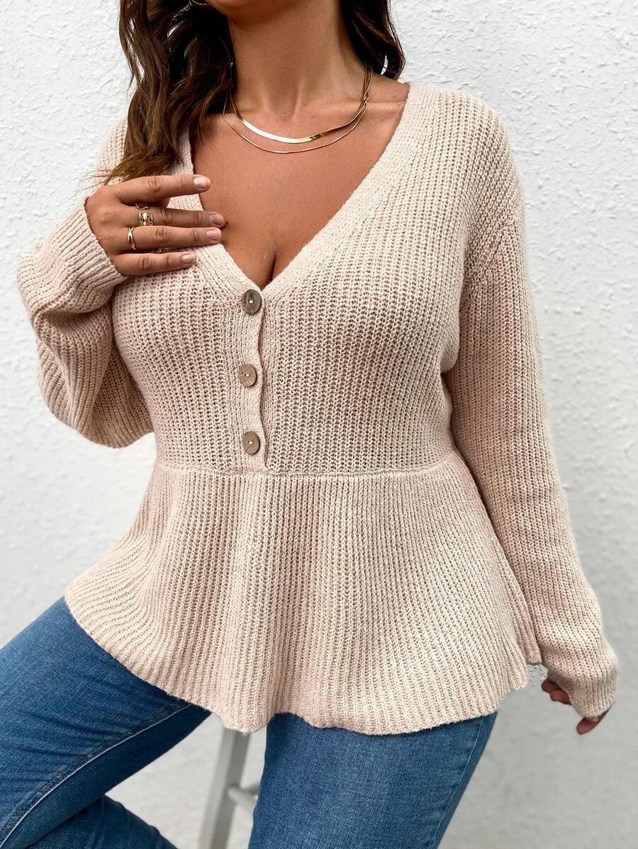 • Frenchy Plus Plunging Peplum Sweater