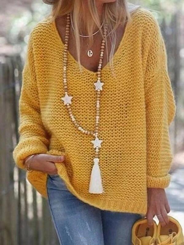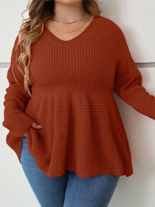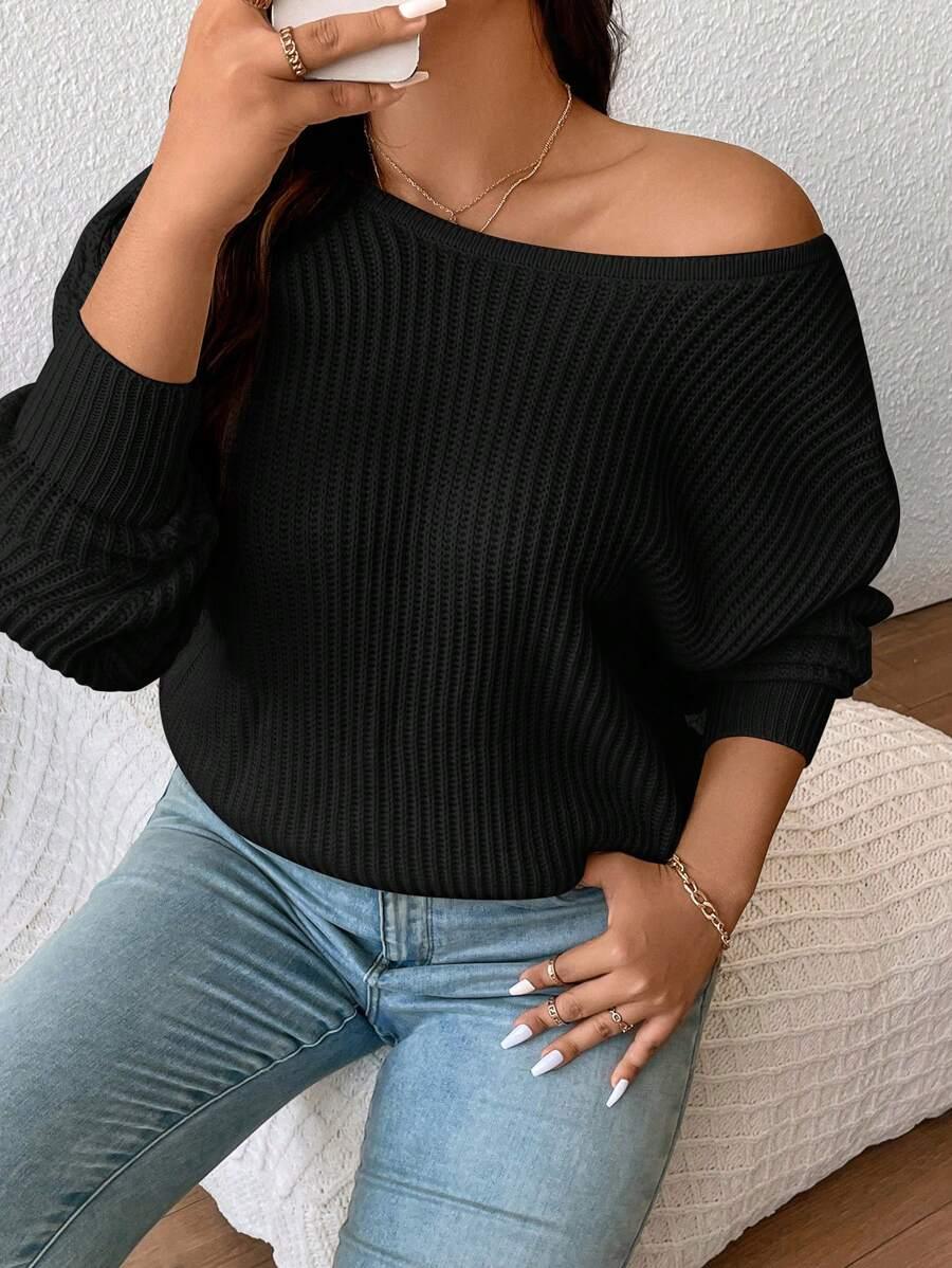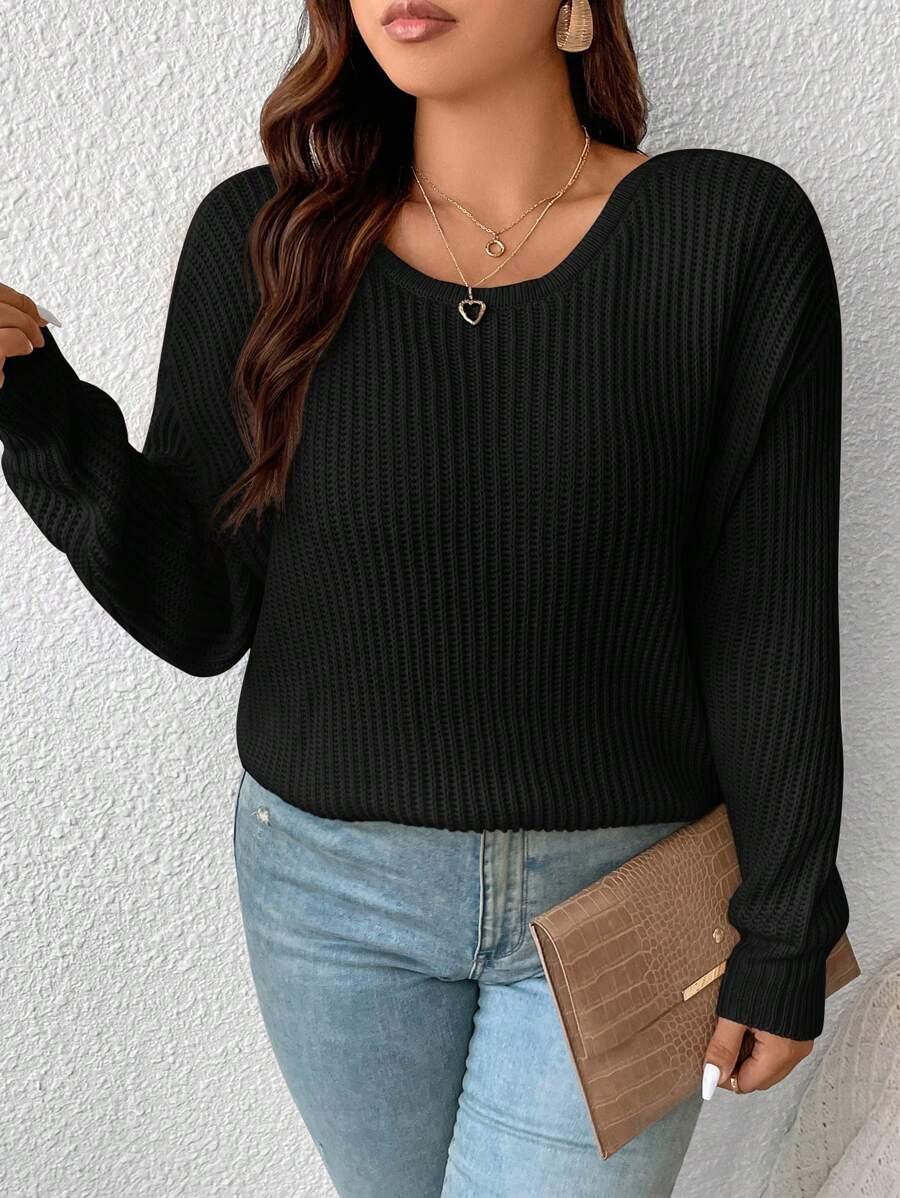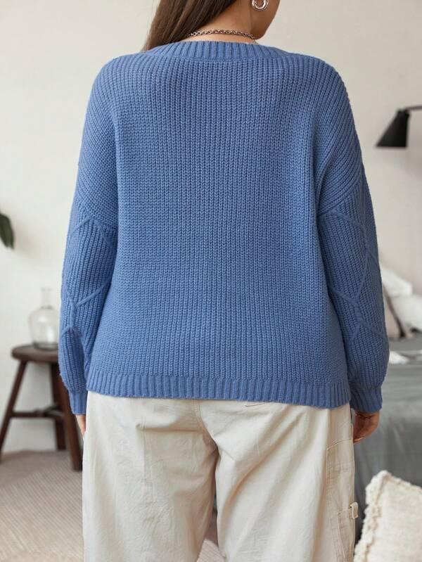 • Plus Size Drop Shoulder Color Sweater