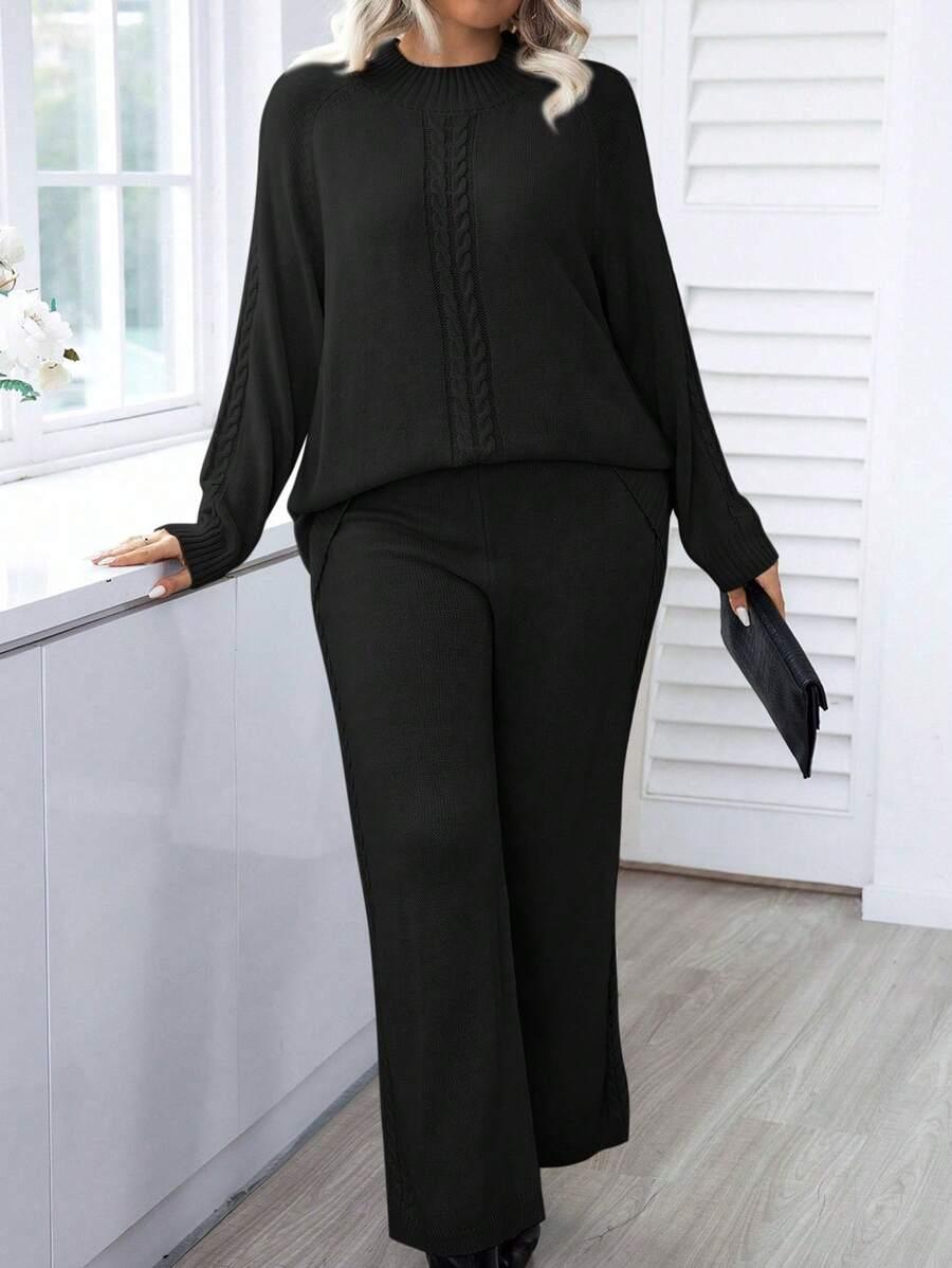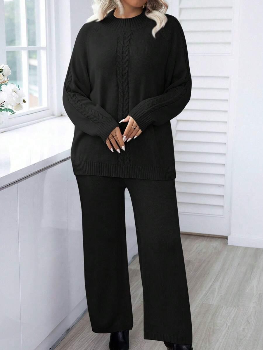 • Plus Cable Knit Raglan Sleeve Sweater And Knit Pants