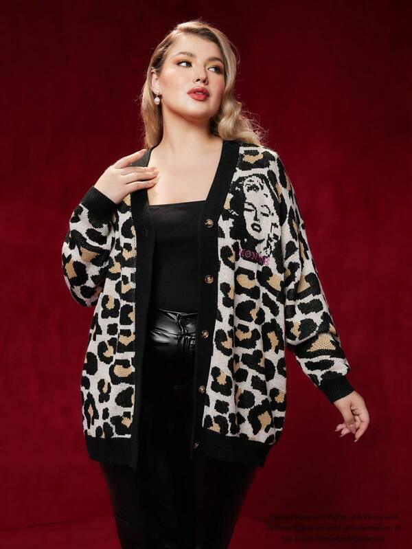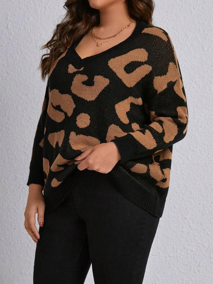• Marilyn Leopard Print Plus Long Sleeve Sweater