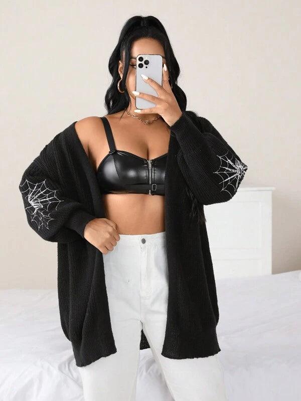 • Spider Web Pattern Plus Long Sleeve Sweater