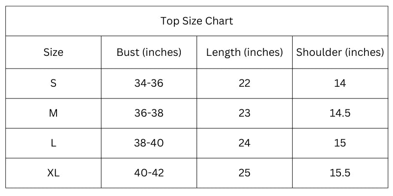 Size Chart (inches):