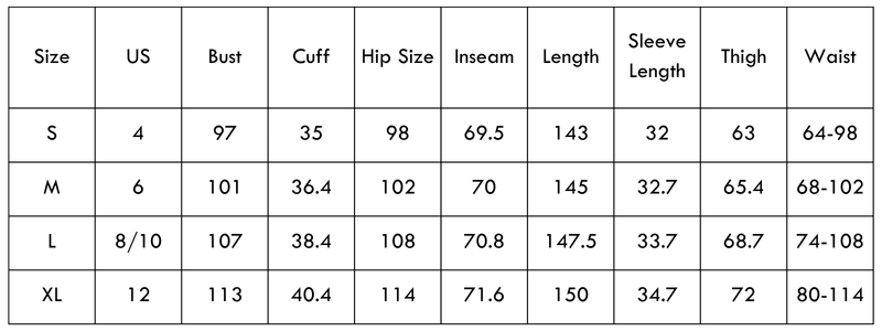 Size Chart(cm):
