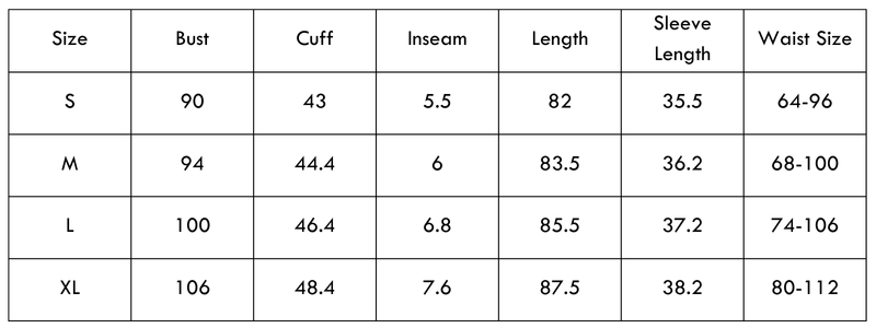 Size Chart(cm):