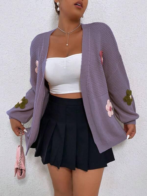 The Appliques Floral Print Duster Cardigan is an everyday outer layer with structured elements and floral detailing. Built from acrylic knit, it holds shape and resists wrinkling while offering freedom through its drop shoulder layout.