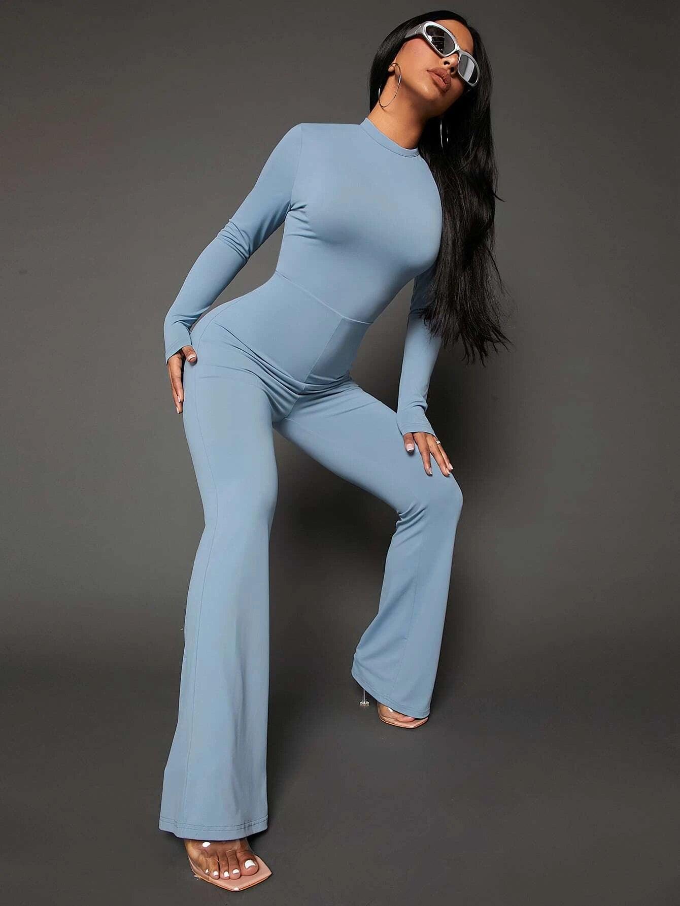 Backless Long Sleeve Jumpsuit is a stylish and trendy one-piece outfit designed for casual occasions. It features a plain pattern, adding a classic and timeless element to the outfit. The jumpsuit is designed with a backless detail and a twist detail, adding a touch of elegance and sophistication to the outfit. The long sleeves provide coverage while still allowing for ease of movement. The jumpsuit is designed with a stand collar neckline, creating a fashionable and trendy look. The jumpsuit is also designed with a high waistline, creating a flattering and fitted silhouette. The jumpsuit is made from a fabric with a slight stretch, providing a comfortable and relaxed fit while still maintaining its skinny fit.