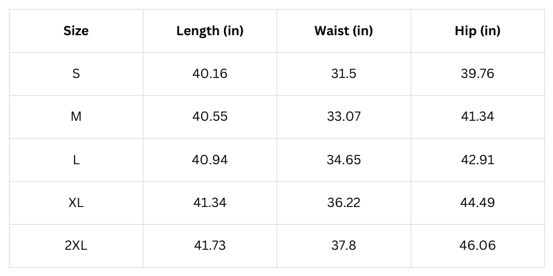 Size Chart (Inches):