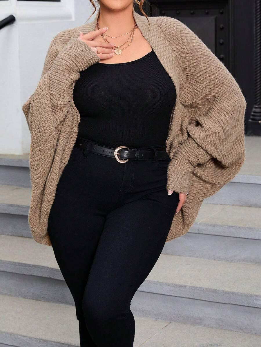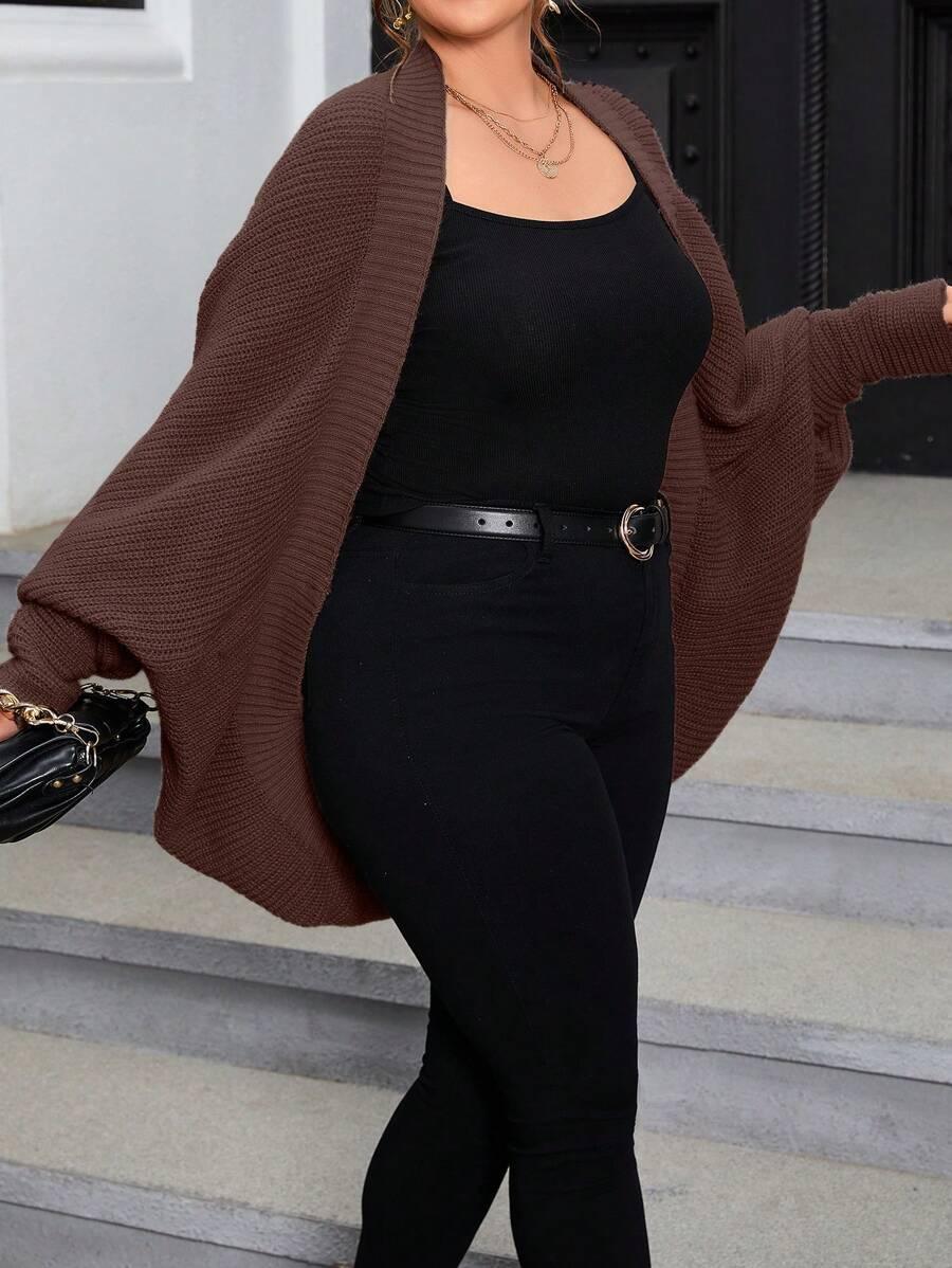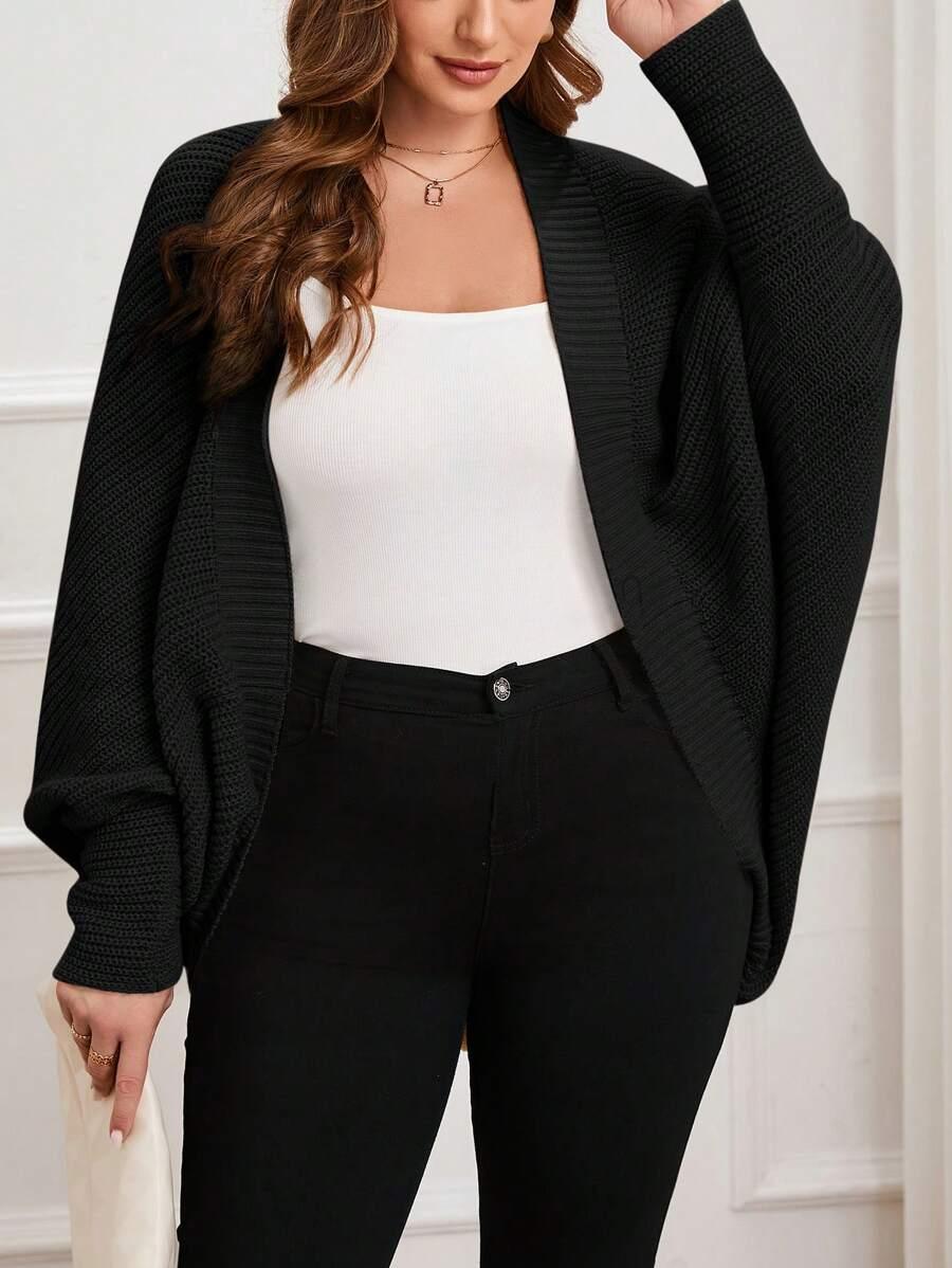 The Plus Batwing Sleeve Open Front Cardigan combines simple structure with understated detailing, offering comfort and flexibility for everyday outfits. Designed with plain texture, rib knit detailing, and a loose outline, this cardigan provides both structure and movement for casual use.