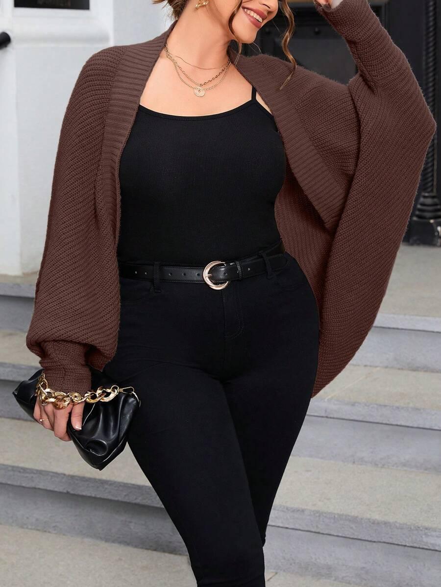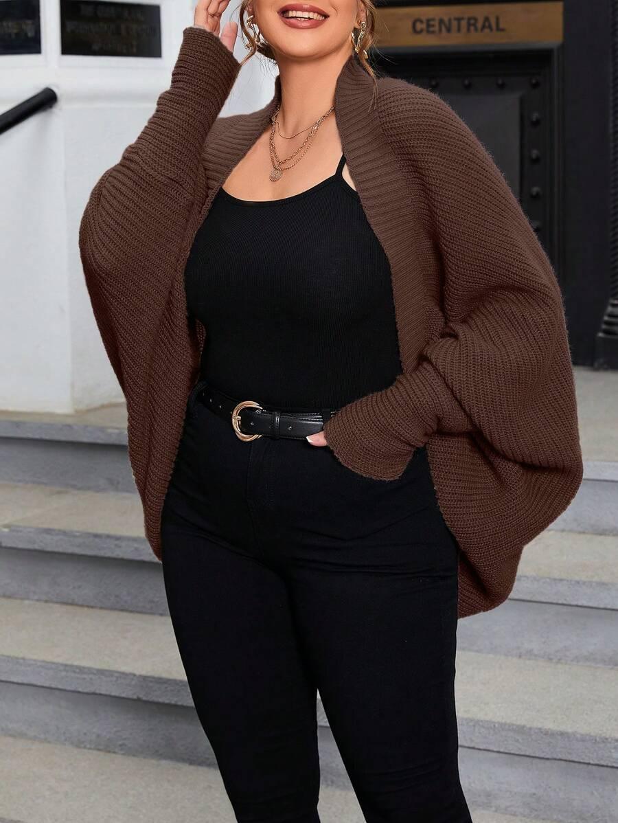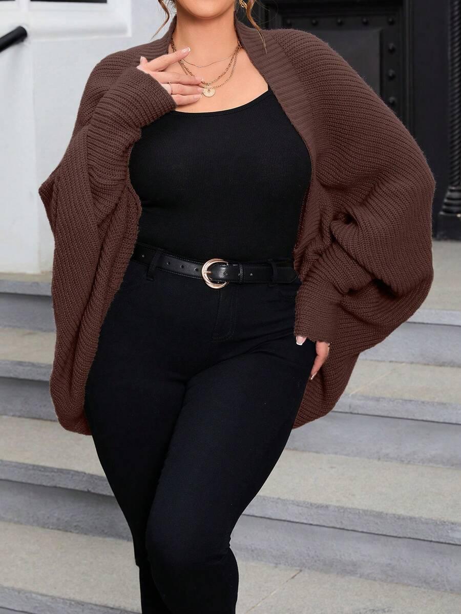 The Plus Batwing Sleeve Open Front Cardigan combines simple structure with understated detailing, offering comfort and flexibility for everyday outfits. Designed with plain texture, rib knit detailing, and a loose outline, this cardigan provides both structure and movement for casual use.