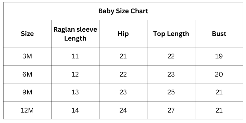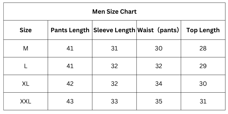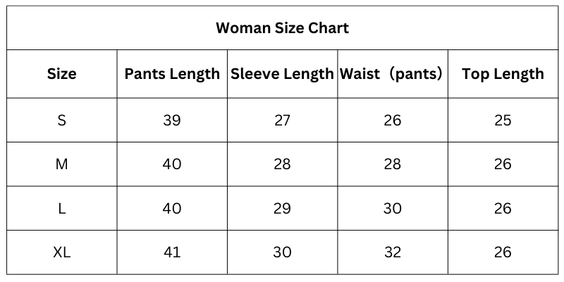 Size Chart (Inches):