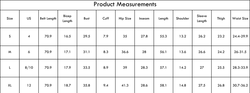 Size Chart (Inches):