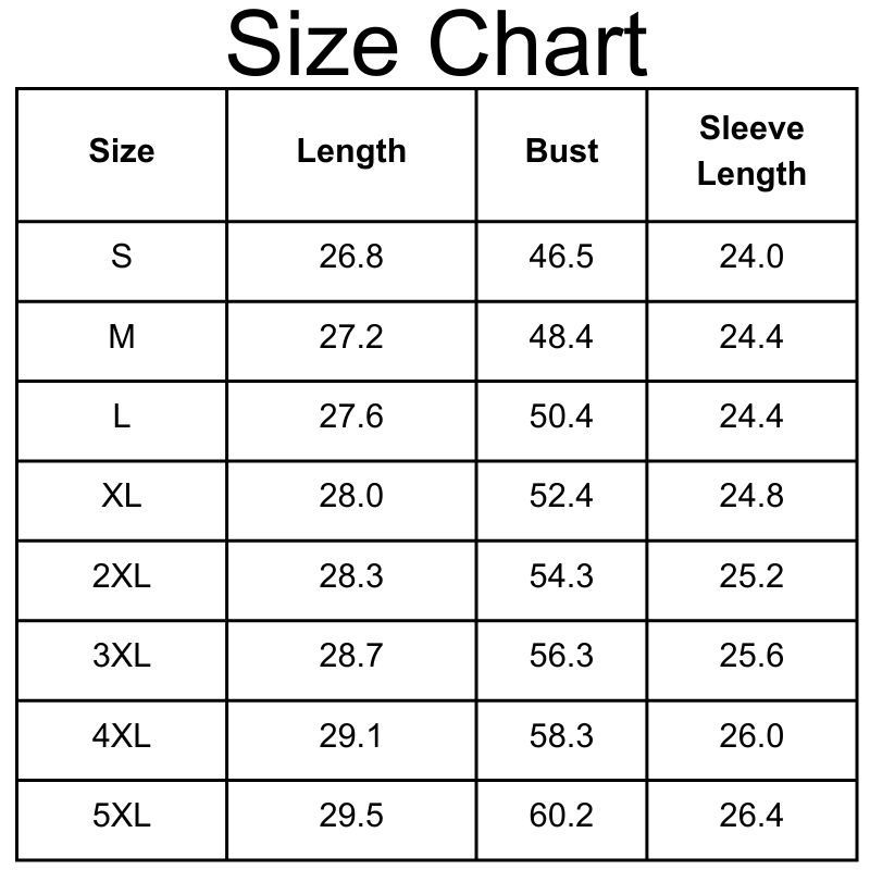 Size Chart (inches):