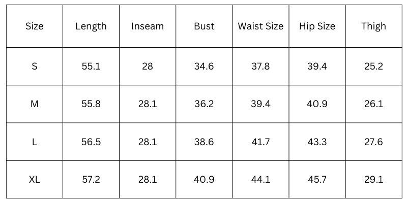 Size Chart (inches):