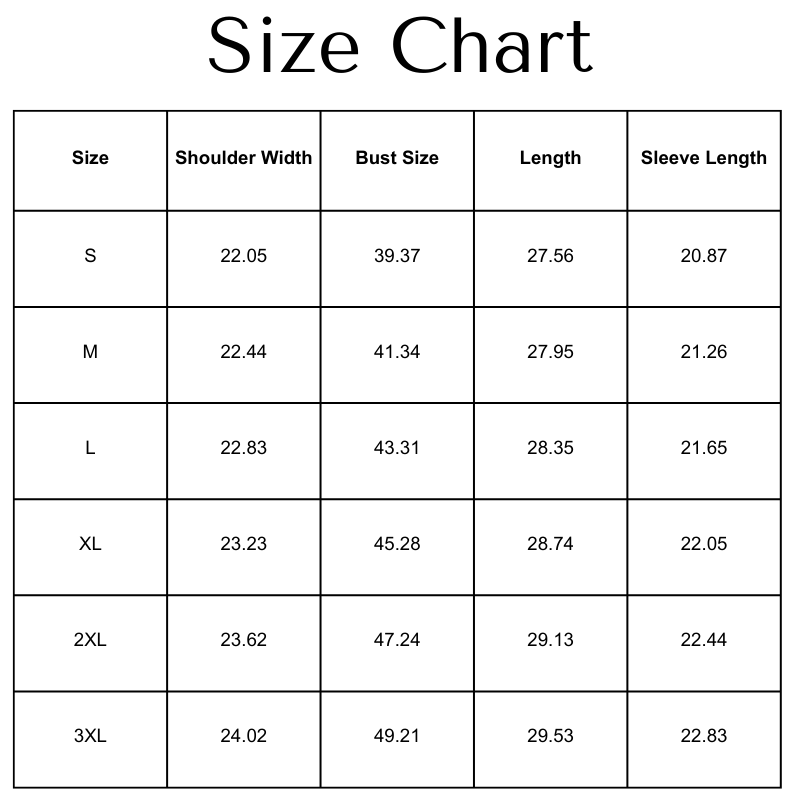 Size Chart(inches):