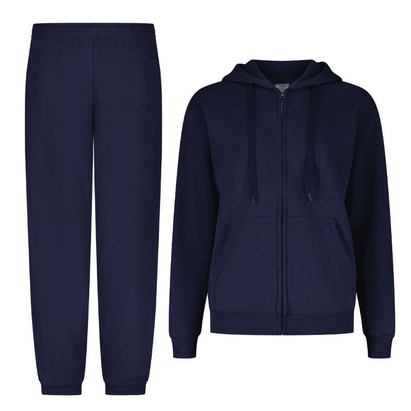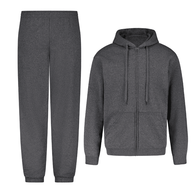This set includes a matching zip-up hoodie and jogger pants, offering a streamlined appearance without the need for additional outfit planning. The cohesive design ensures a balanced look that transitions smoothly between indoor comfort and outdoor practicality.