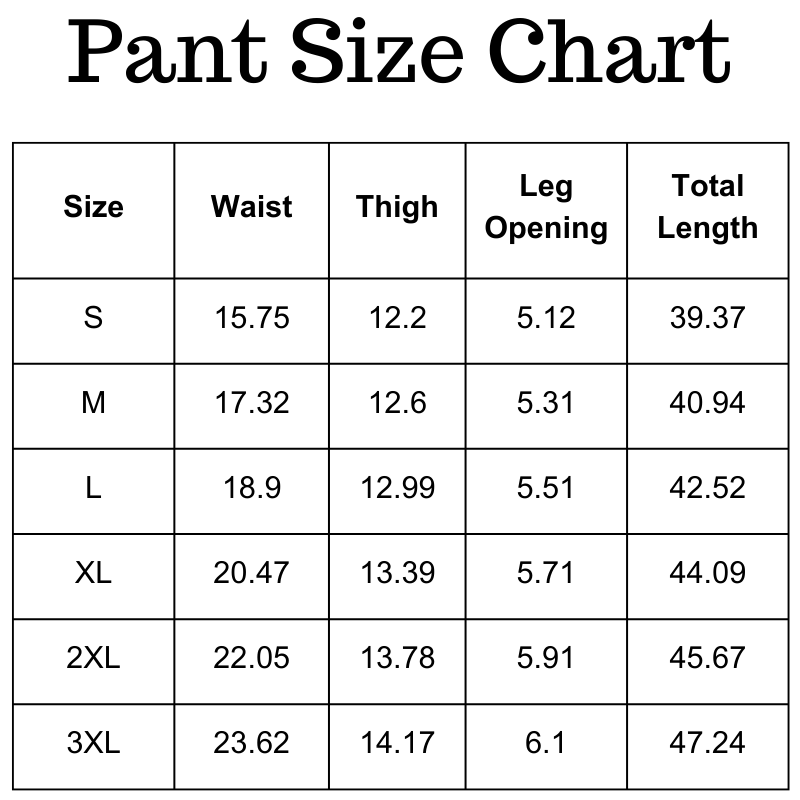Size Chart(inches):