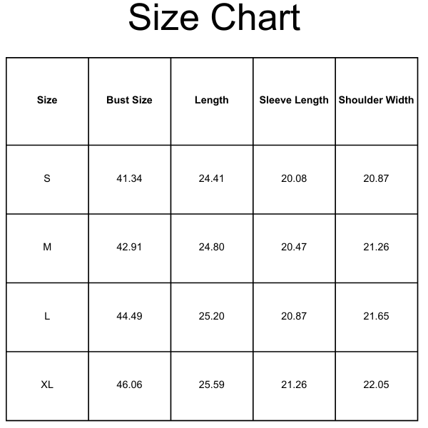 Size Chart (inches):