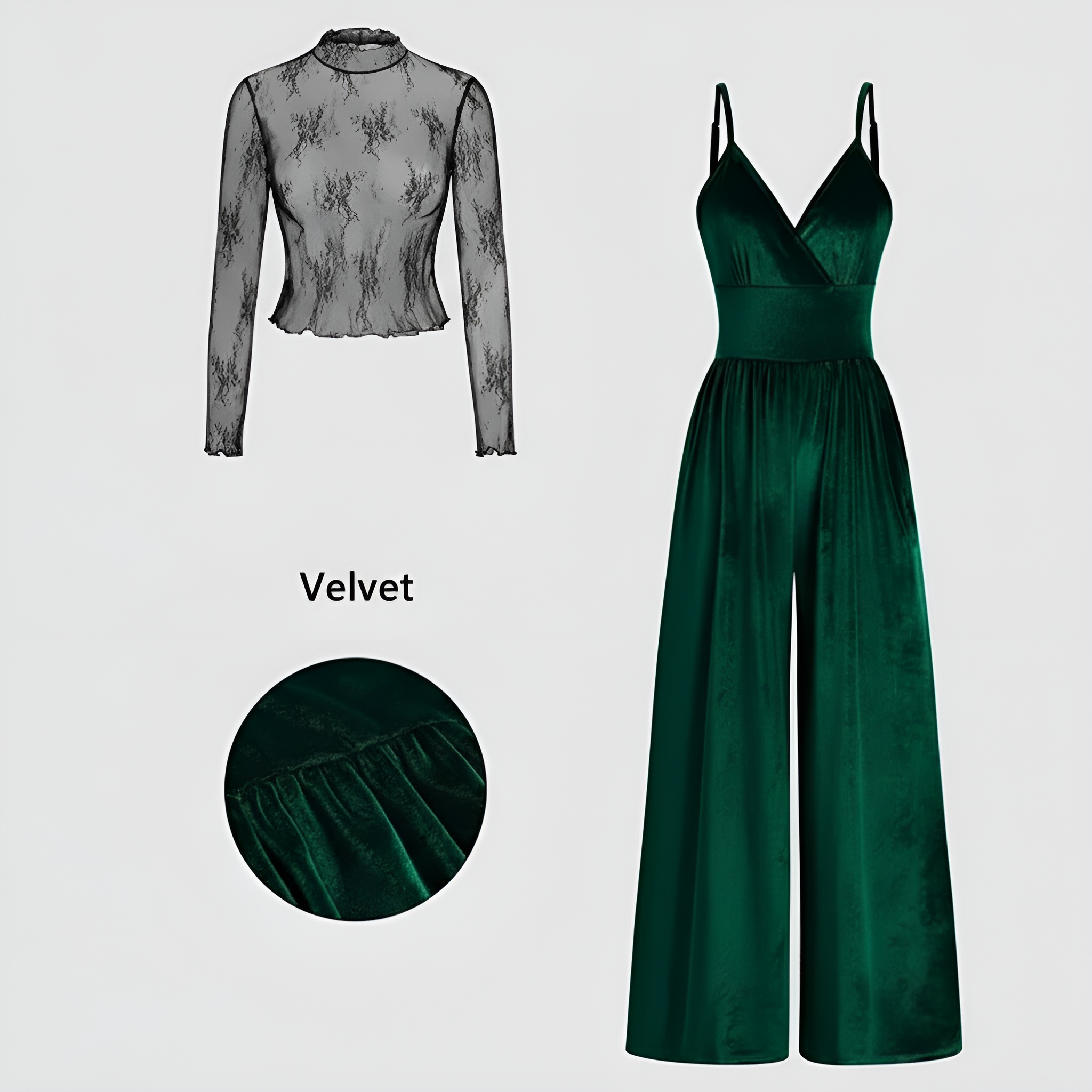 Lace Tee Jumpsuit Set is a two-piece outfit featuring a long-sleeve lace tee and a cami-style jumpsuit with a back zipper and pockets. Designed for coordinated styling, it suits daily wear, travel days, and seasonal transitions. Wear the pieces together for a layered look or mix them with other wardrobe staples for more outfit options. Follow the care guidance and garment label instructions to help maintain lace texture and keep the set ready for repeat wear.