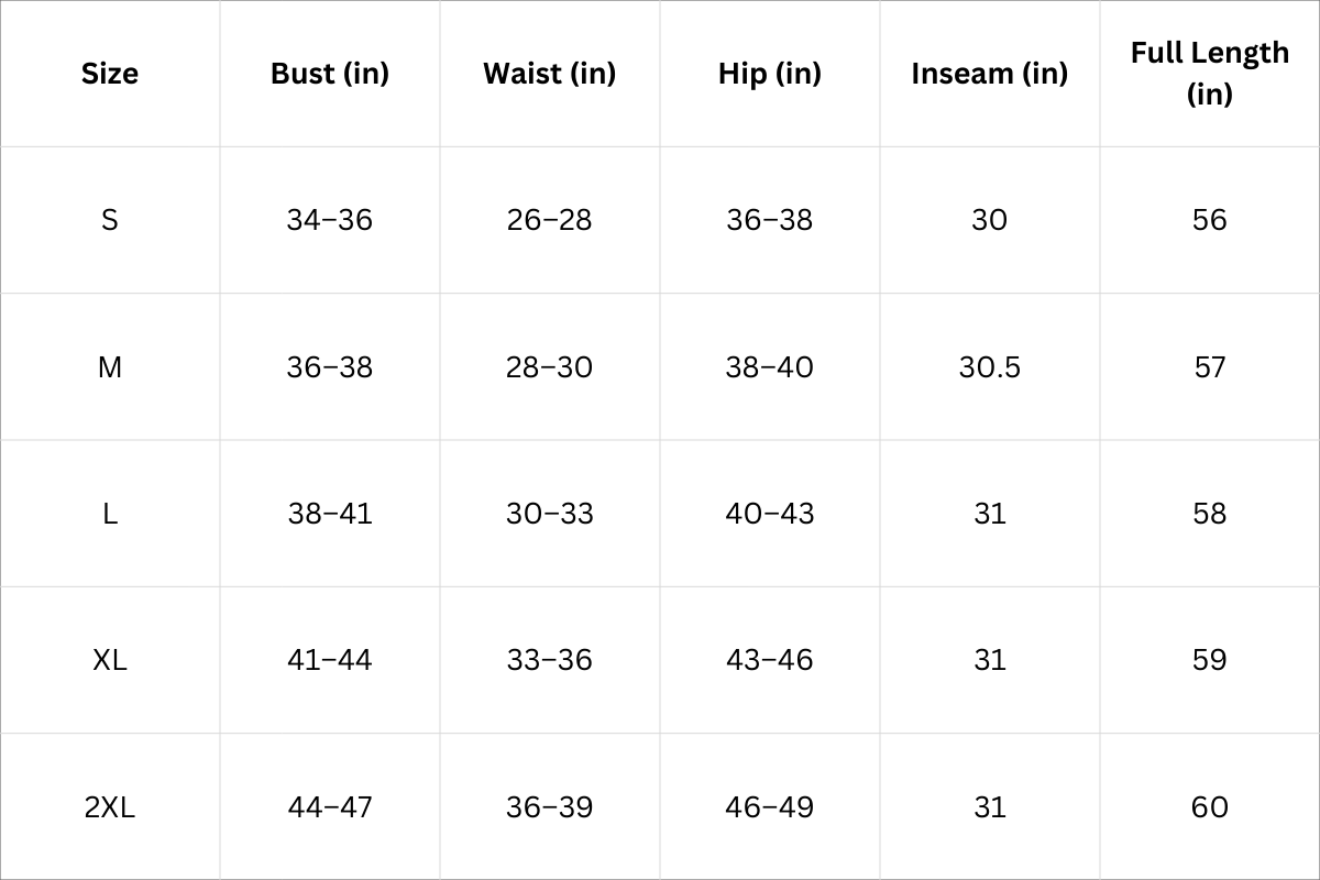 Jumpsuit Size Chart (Inches):