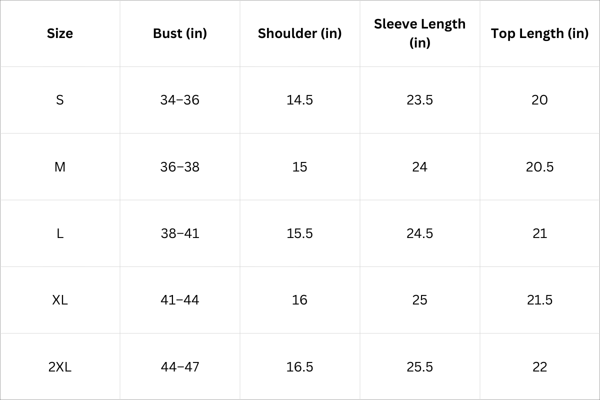 Top Size Chart (Inches):