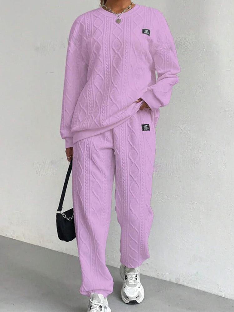 Redefine everyday fashion with this casual sweatshirt set, a perfect blend of comfort and modern simplicity. This two-piece outfit includes a pullover top and matching pants, offering a stylish silhouette ideal for both lounging and going out. The breathable fabric and flattering cut make this set a staple in any wardrobe.