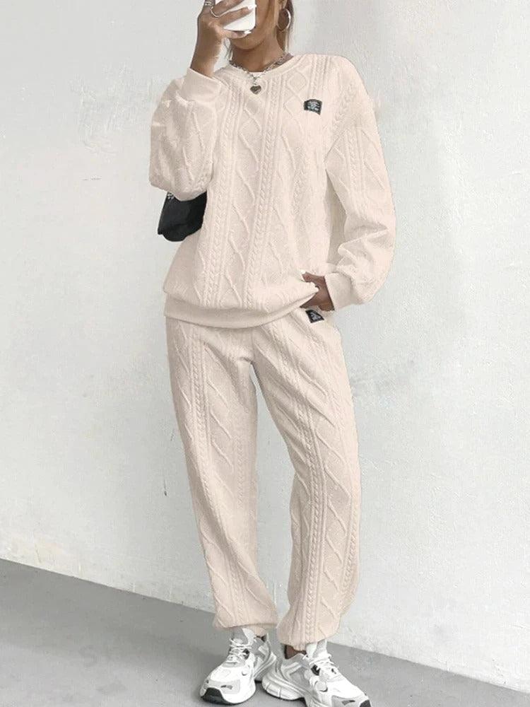 The casual sweatshirt set is your go-to for effortless comfort and refined style. Whether lounging at home or stepping out for everyday errands, its soft texture, high-waisted fit, and practical structure make it a staple you'll keep reaching for. Enjoy versatile style and reliable comfort in one sleek, easy-to-wear package.