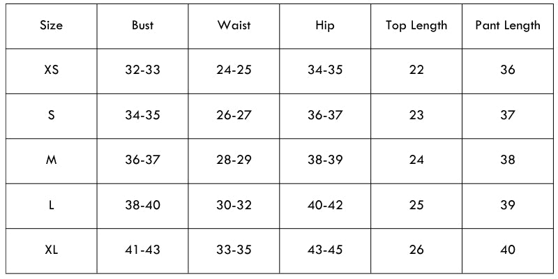 Size Chart(inches):