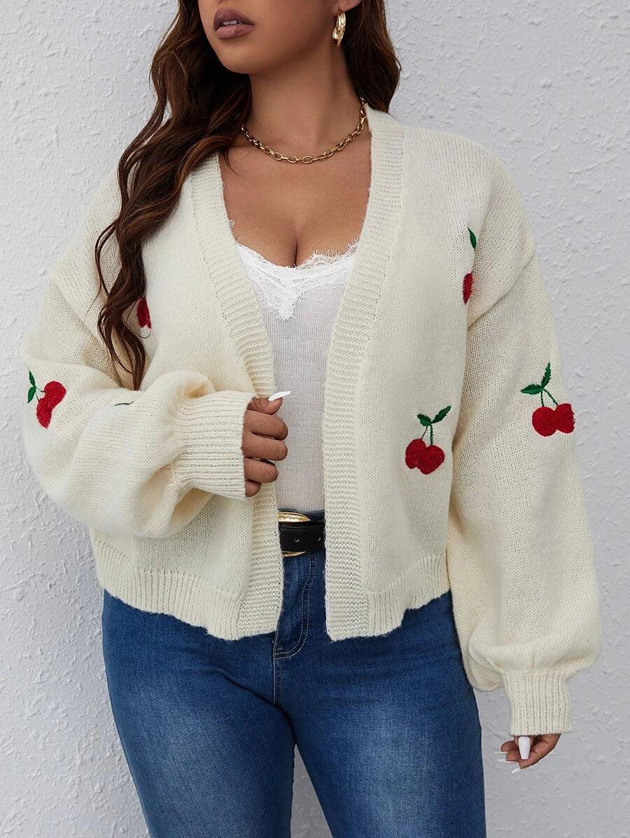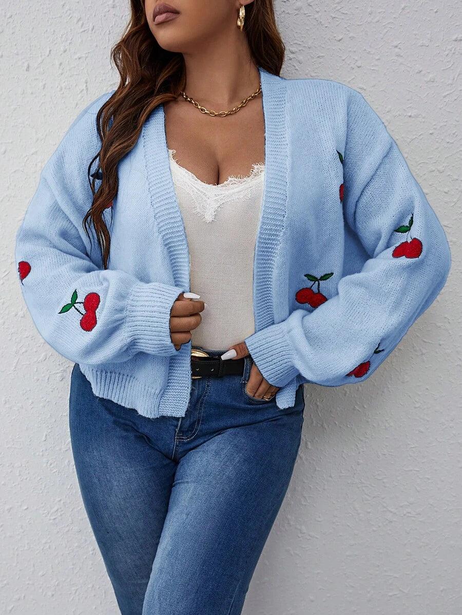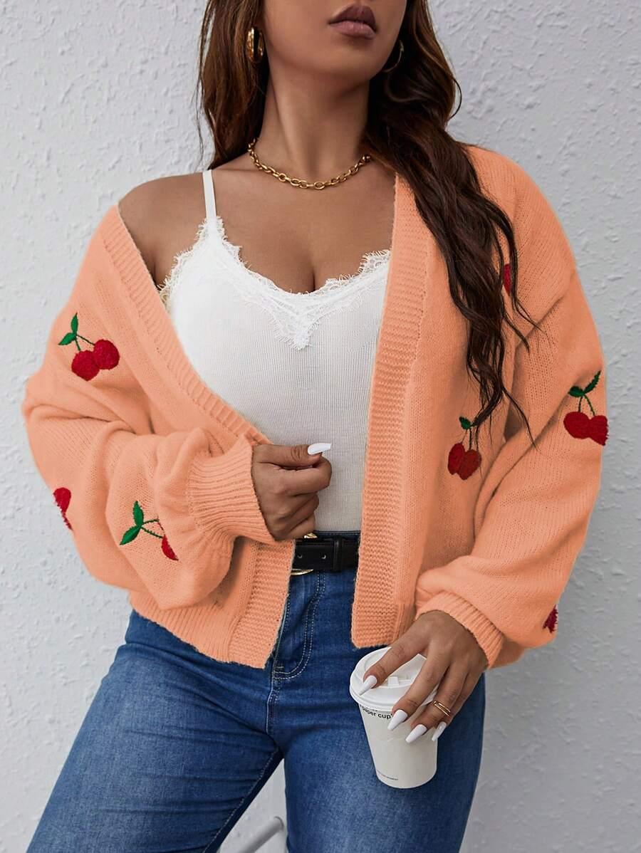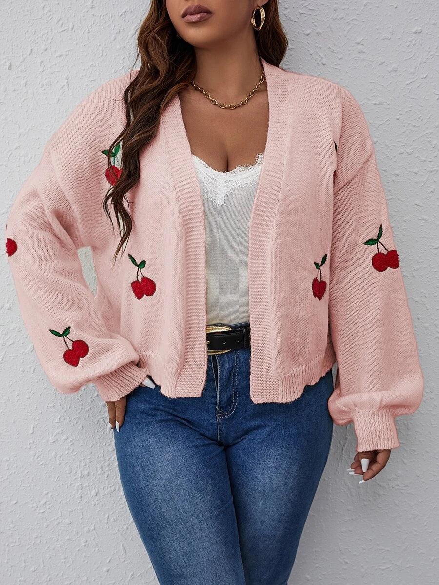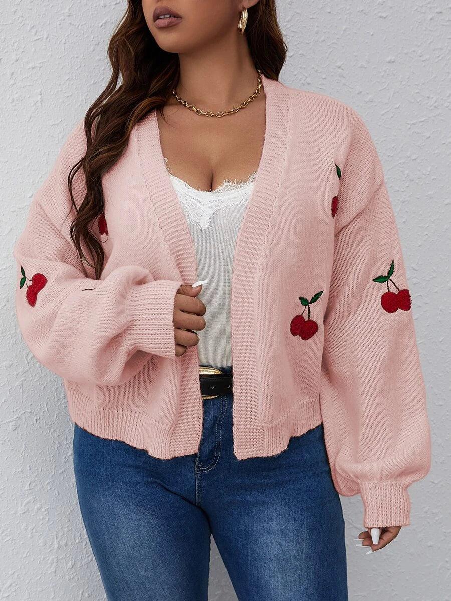 Step into a world of Cherry Pattern Balloon Sleeve Duster Cardigan whimsical style and effortless elegance with our Cherry Duster Cardigan. Designed for modern women who cozy layering without compromising on charm, this longline balloon sleeve cardigan brings a vibrant twist to your wardrobe with its adorable cherry embroidery and flowing silhouette.