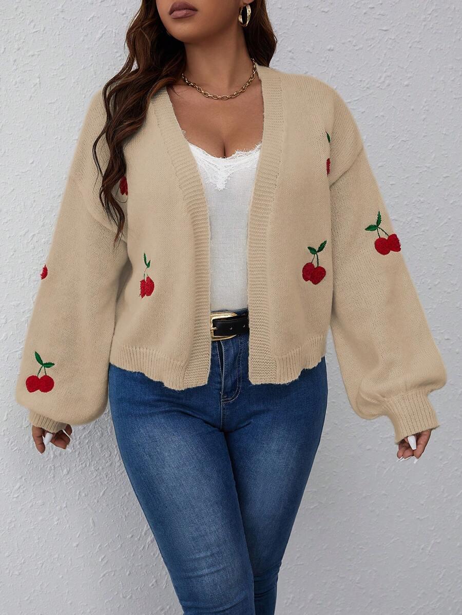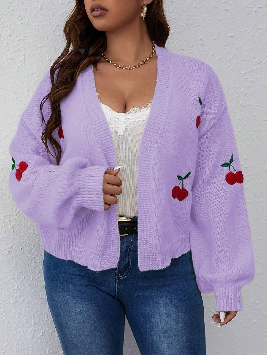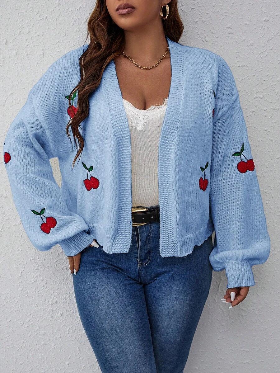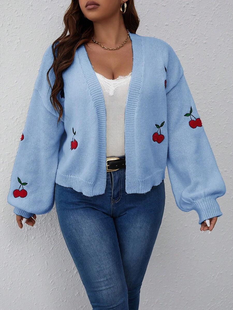 Unlike ordinary cardigans, this patterned duster cardigan delivers expressive fashion and wearable warmth. Crafted from high-quality, slightly stretchy polyester, it drapes beautifully without adding bulk. The balloon sleeves introduce movement and drama, while the cherry motif embroidery lends a sweet, vibe.