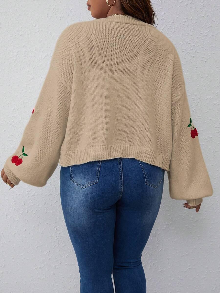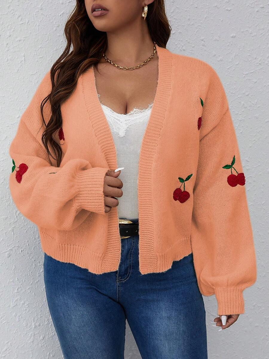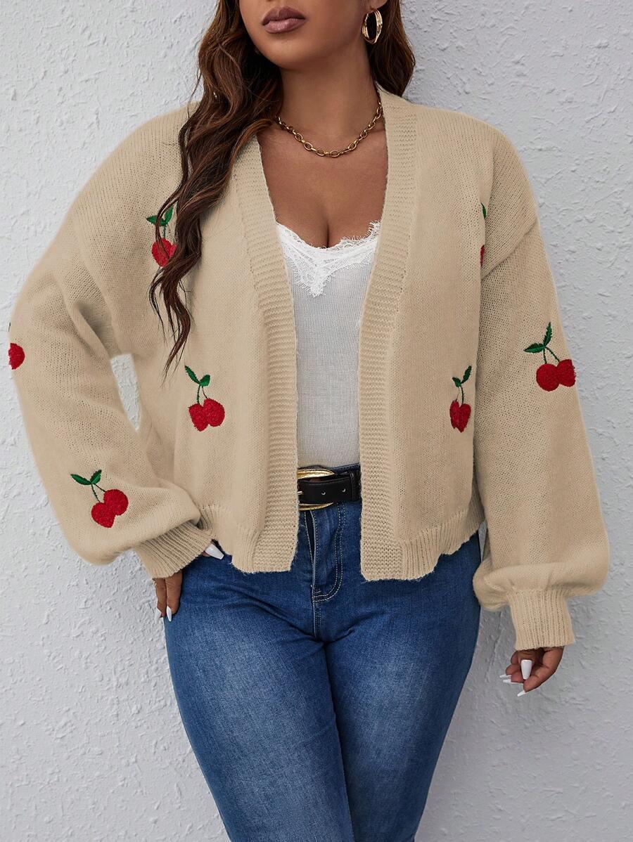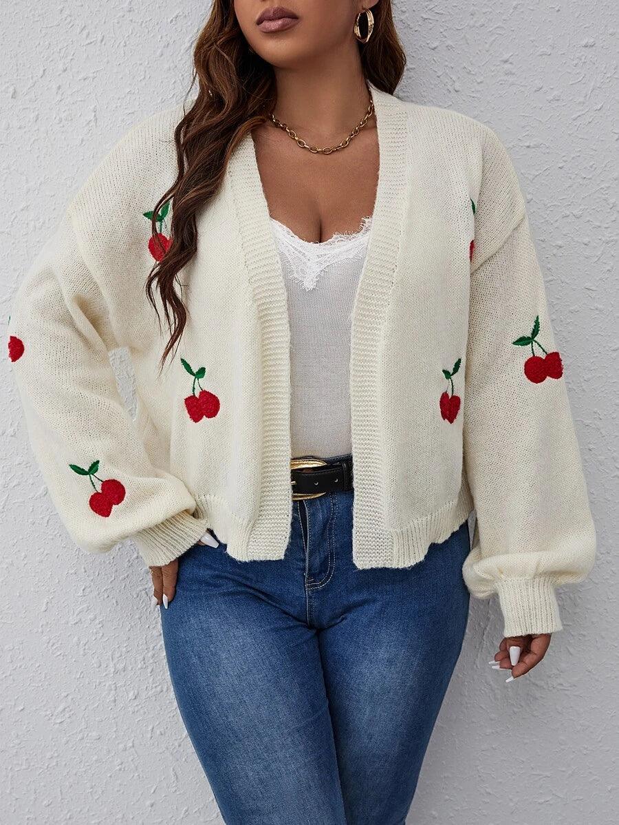 Unlike ordinary cardigans, this patterned duster cardigan delivers expressive fashion and wearable warmth. Crafted from high-quality, slightly stretchy polyester, it drapes beautifully without adding bulk. The balloon sleeves introduce movement and drama, while the cherry motif embroidery lends a sweet, vibe.