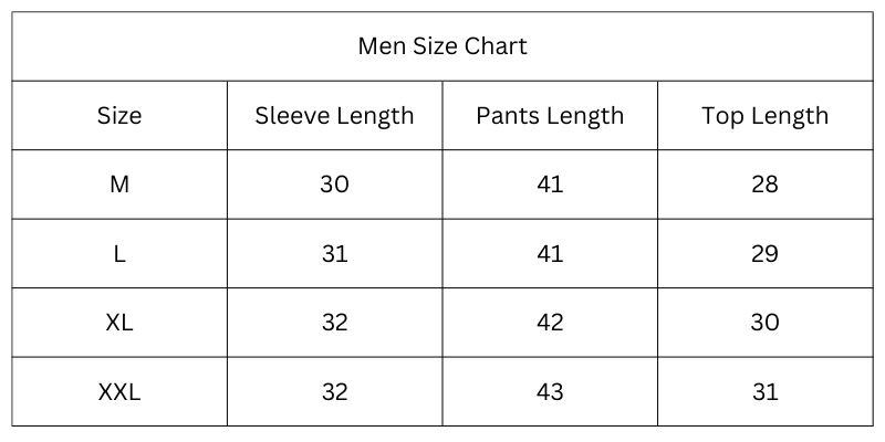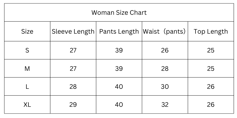 Size Chart (Inches):