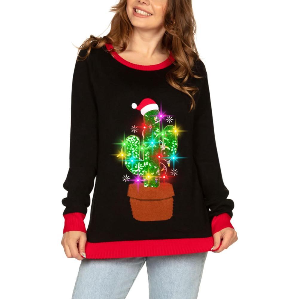The glowing design keeps the festive spirit alive, while the soft feel encourages everyday wear. This Christmas sweater with accents delivers both function and charm across many occasions.