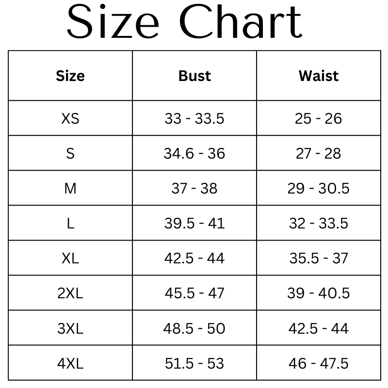 Size Chart (inches):