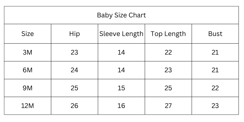 Size Chart (Inches):