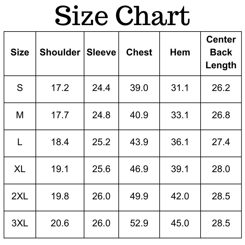Size Chart(inches):