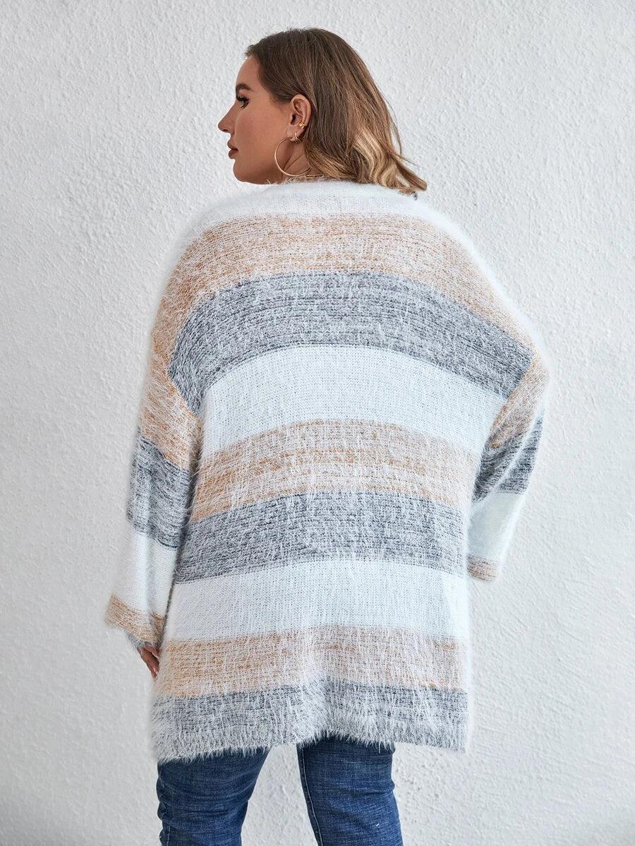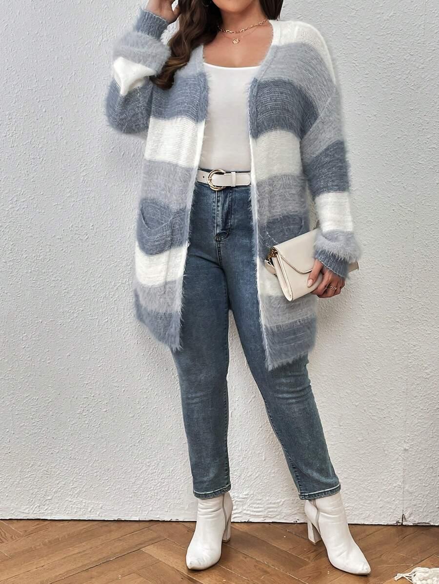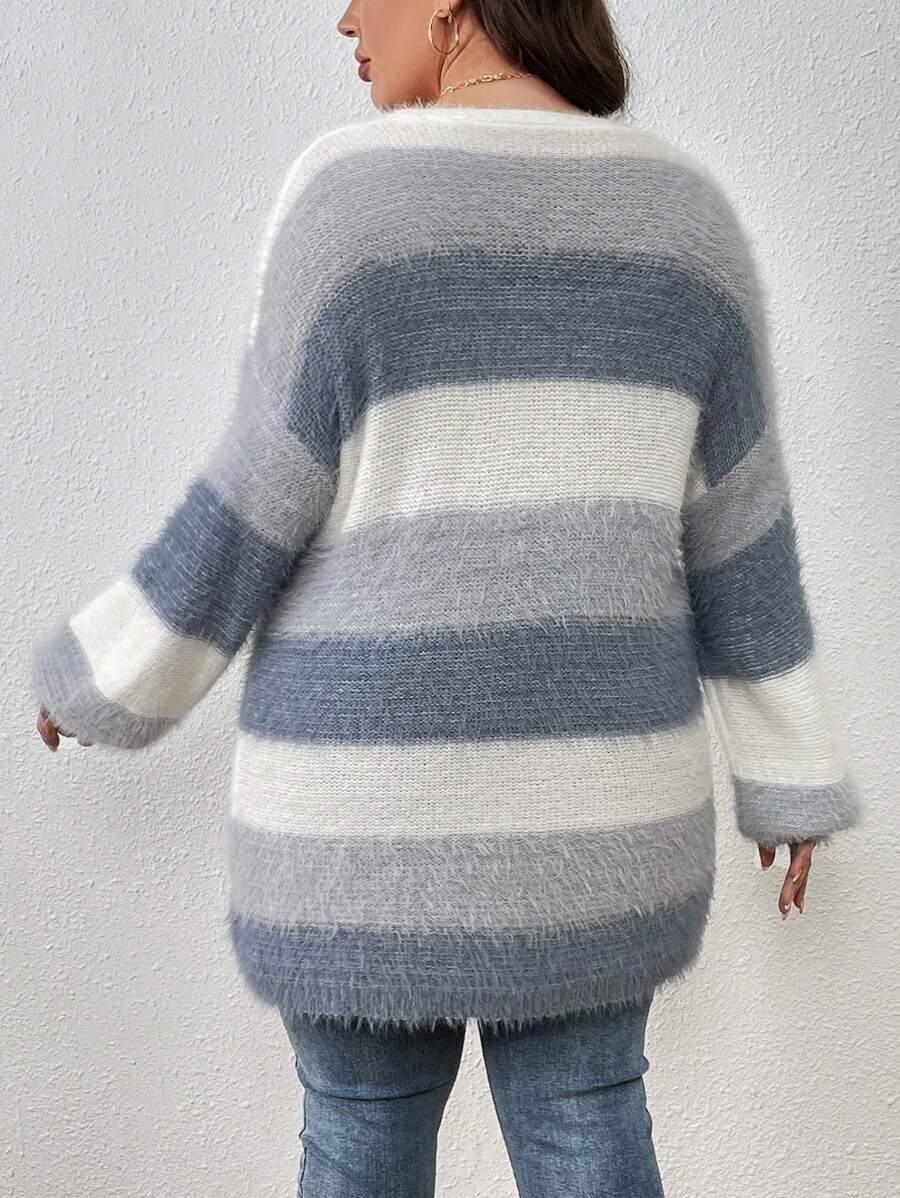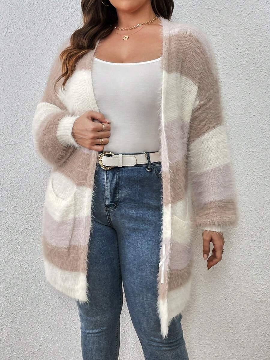 The Colorblock Fluffy Knit Cardigan works as an everyday piece during seasonal transitions. Its shape and color palette offer a versatile option for casual layering.