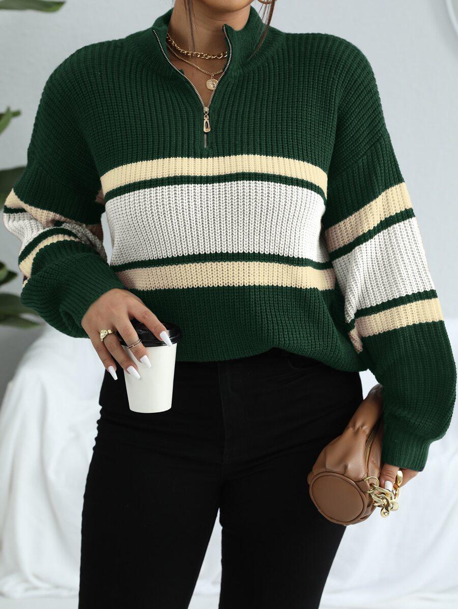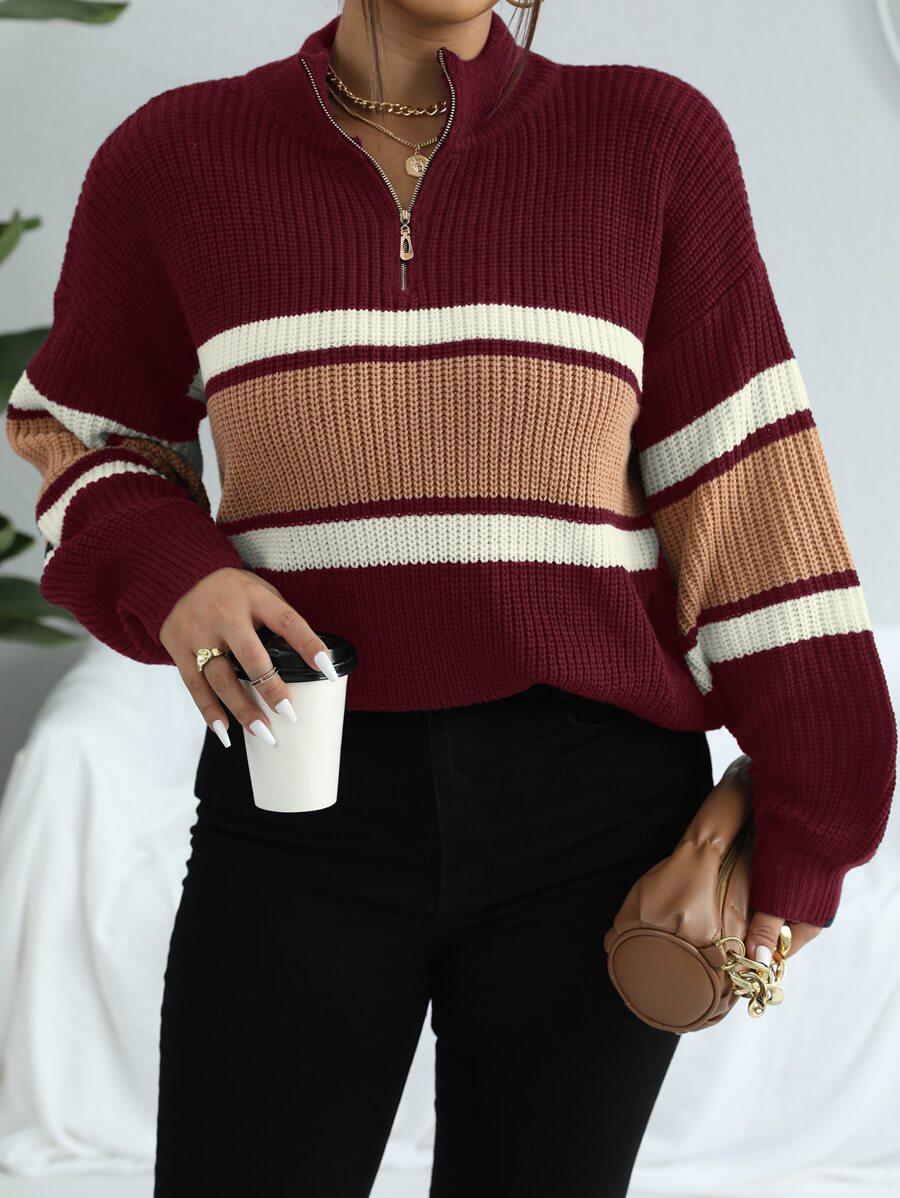 The colorblock half zip sweater is made to add bold flair to your everyday wear. With a drop shoulder pullover shape and a modern half zip knitwear detail, it suits multiple casual moments. The casual zipper sweater design makes it simple to pair. It brings ease and form together. With a stand collar pullover neckline and long sleeve knitwear coverage, this sweater gives everyday outfits a sharp boost. Crafted from acrylic pullover sweater fabric, it keeps its form while staying soft to wear. The regular fit knitwear offers structure without stiffness.