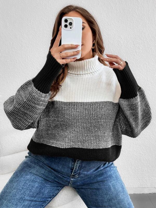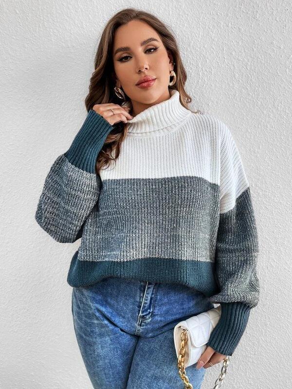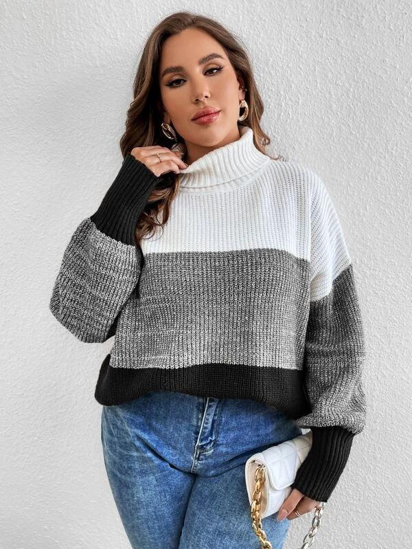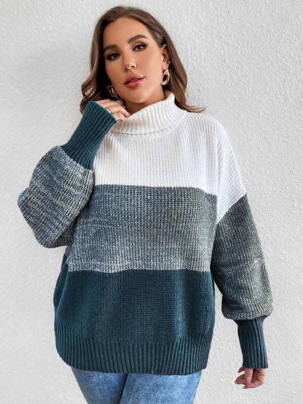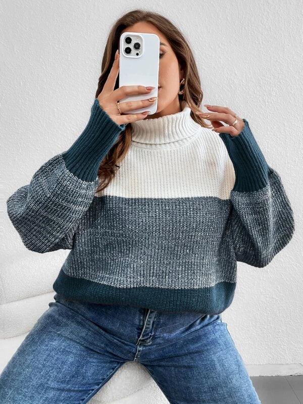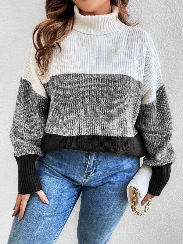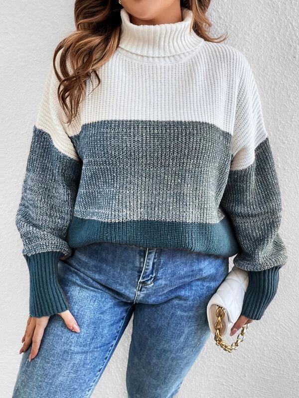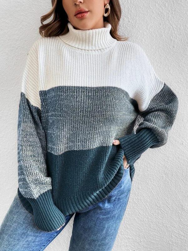 Colorblock Long Sleeve Stretchable Sweater