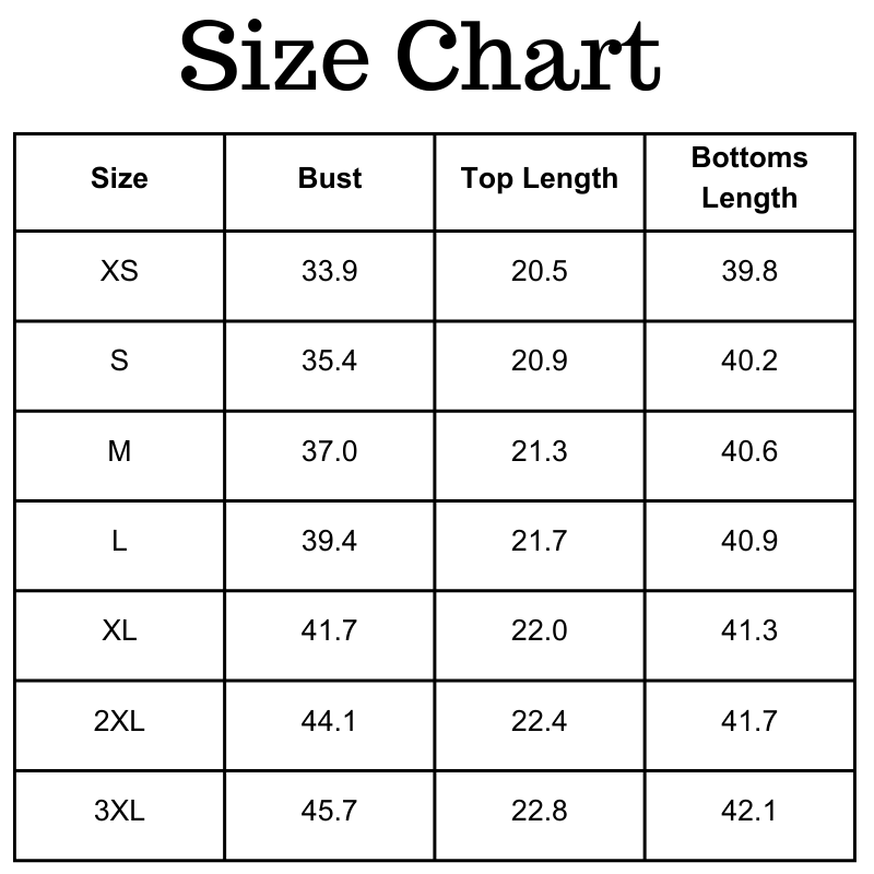 Size Chart (inches):
