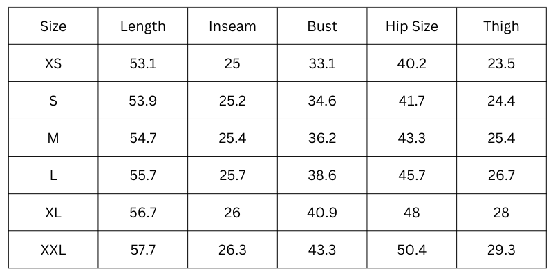 Size Chart (inches):
