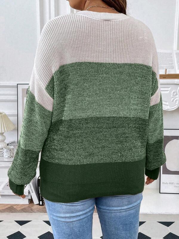 Colorblock knitted pullover design enhances the look with contrasting panels