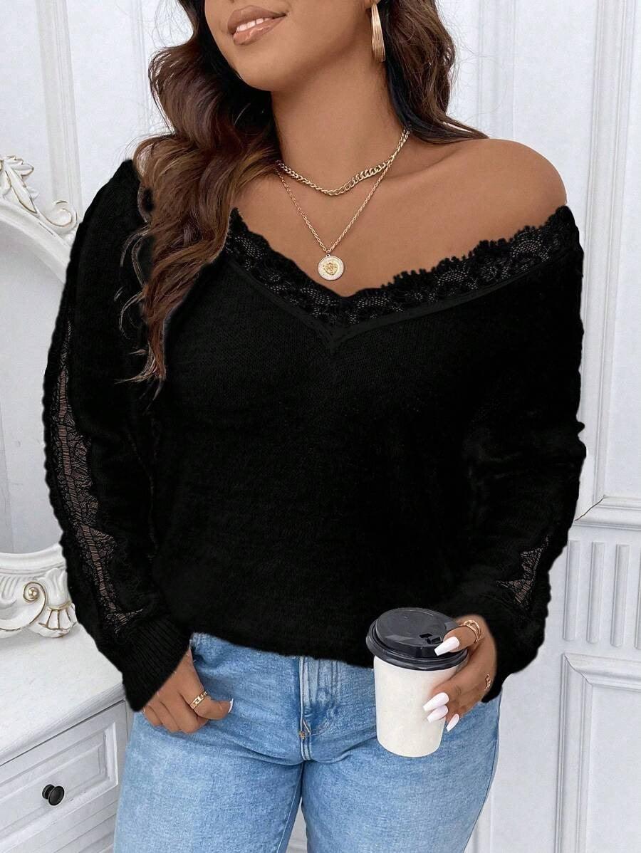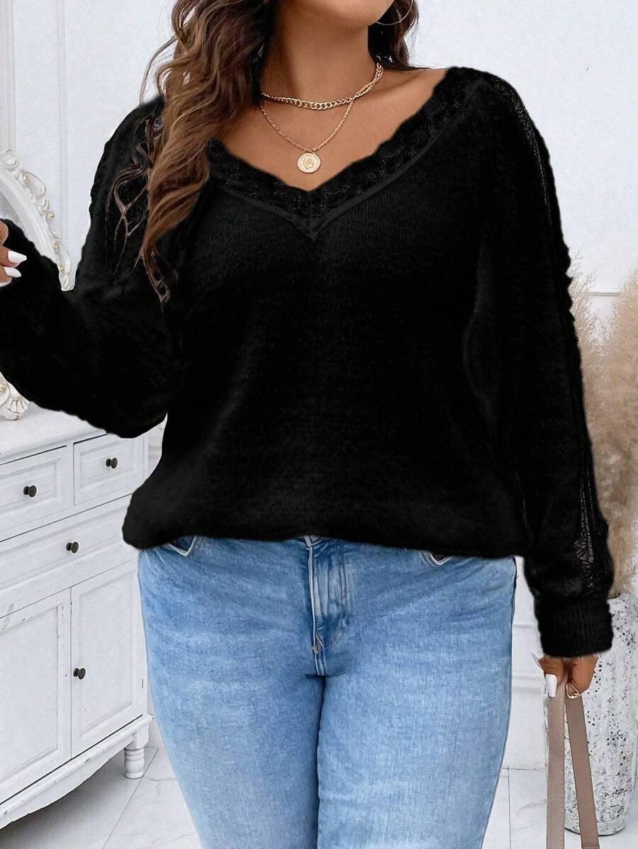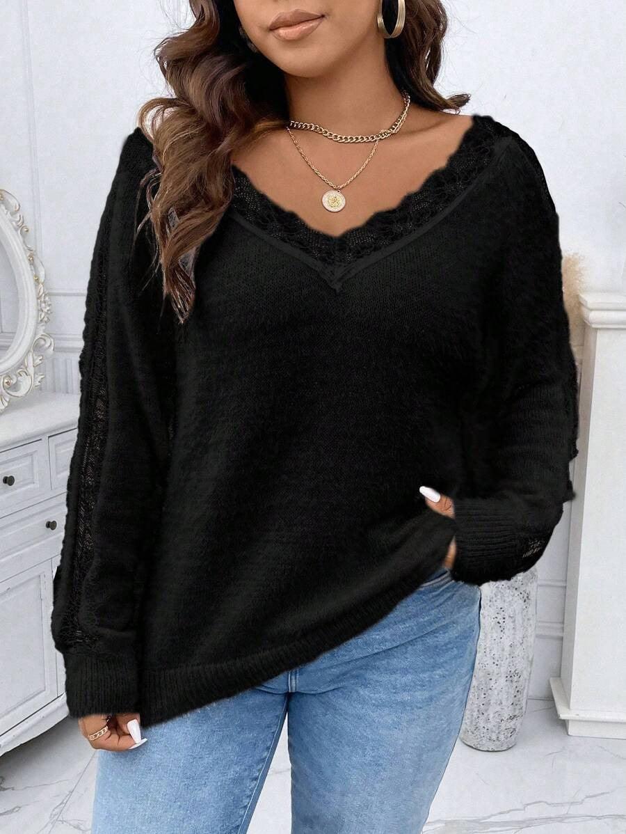 Match the lace accent pullover with soft trousers or plain skirts for a balanced weekday outfit.