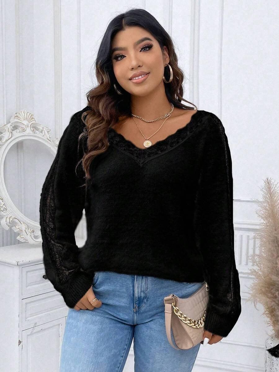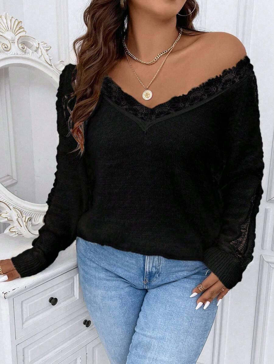 Why Choose Contrast Lace Knit Sweater