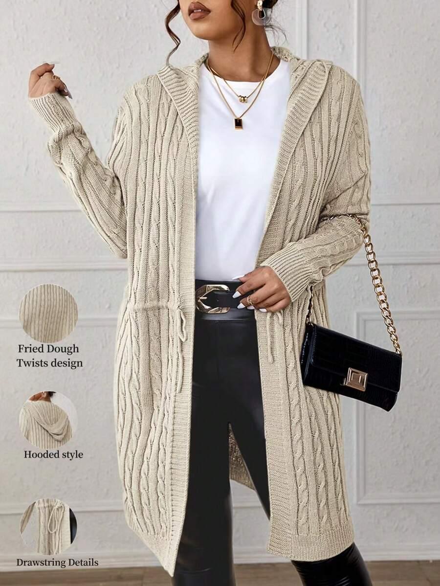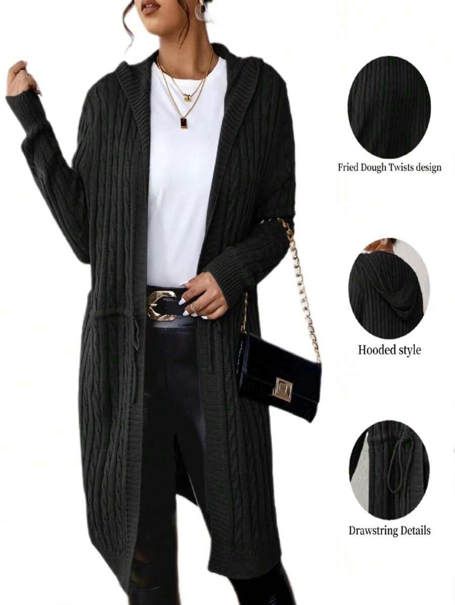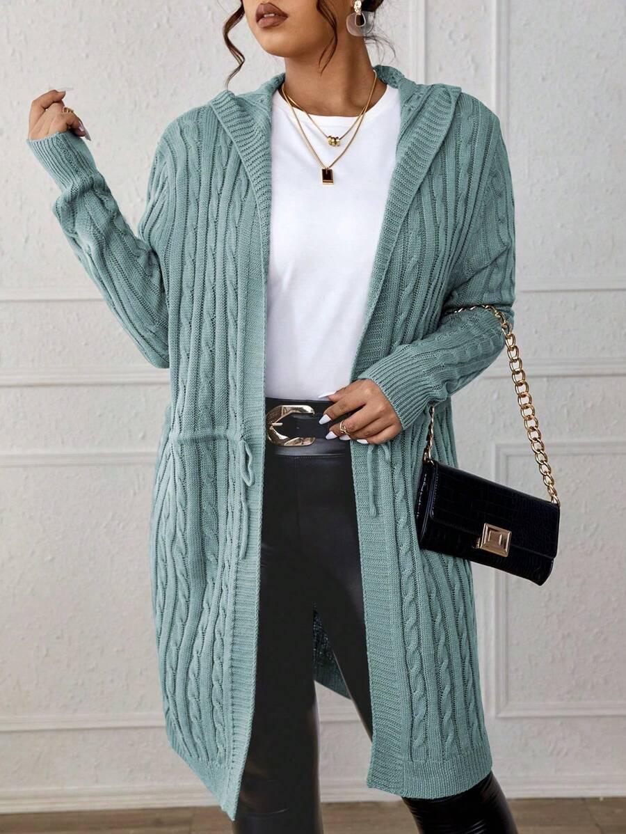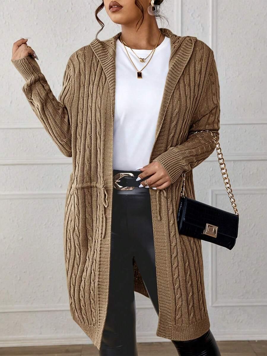 The drawstring cable knit cardigan gives structure and softness in one look. With a cable knit sweater design and hooded knit cardigan style this piece is functional year-round. From long sleeve cardigan shape to acrylic knit cardigan fabric the details support easy movement. Whether worn during outdoor strolls or indoor days it becomes a flexible wardrobe staple. Choose this regular fit jacket as your go-to during seasonal shifts. Pair it with everyday basics or style it with boots and scarves. Make comfort simple without losing clean structure.