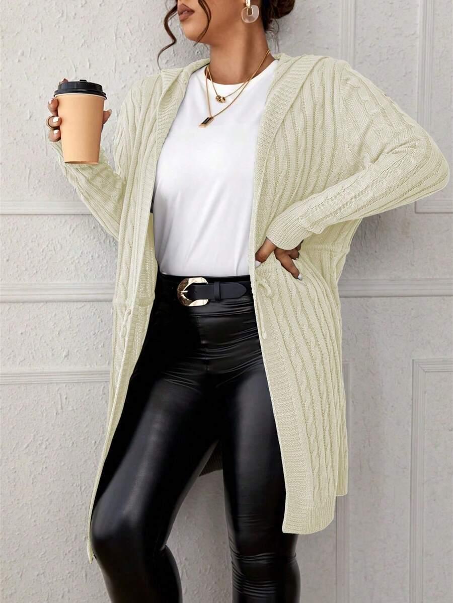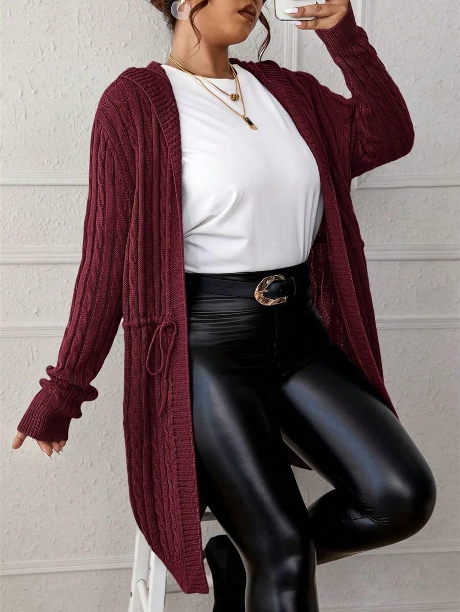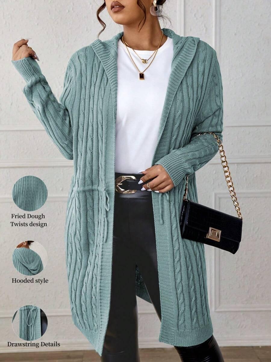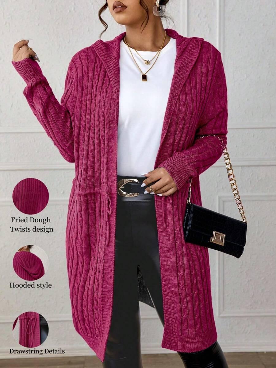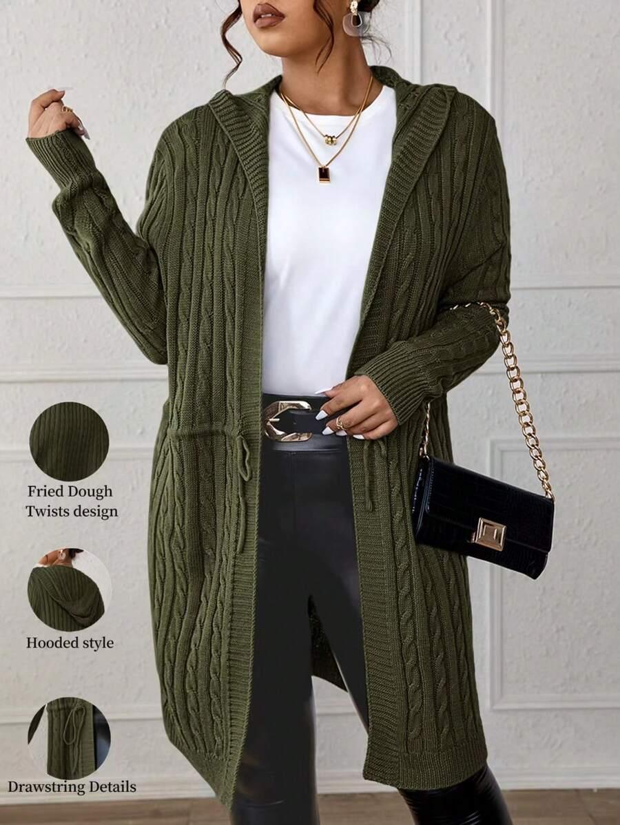 The drawstring cable knit cardigan gives structure and softness in one look. With a cable knit sweater design and hooded knit cardigan style this piece is functional year-round. From long sleeve cardigan shape to acrylic knit cardigan fabric the details support easy movement. Whether worn during outdoor strolls or indoor days it becomes a flexible wardrobe staple. Choose this regular fit jacket as your go-to during seasonal shifts. Pair it with everyday basics or style it with boots and scarves. Make comfort simple without losing clean structure.