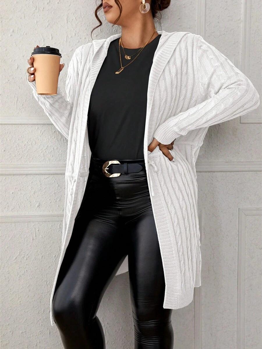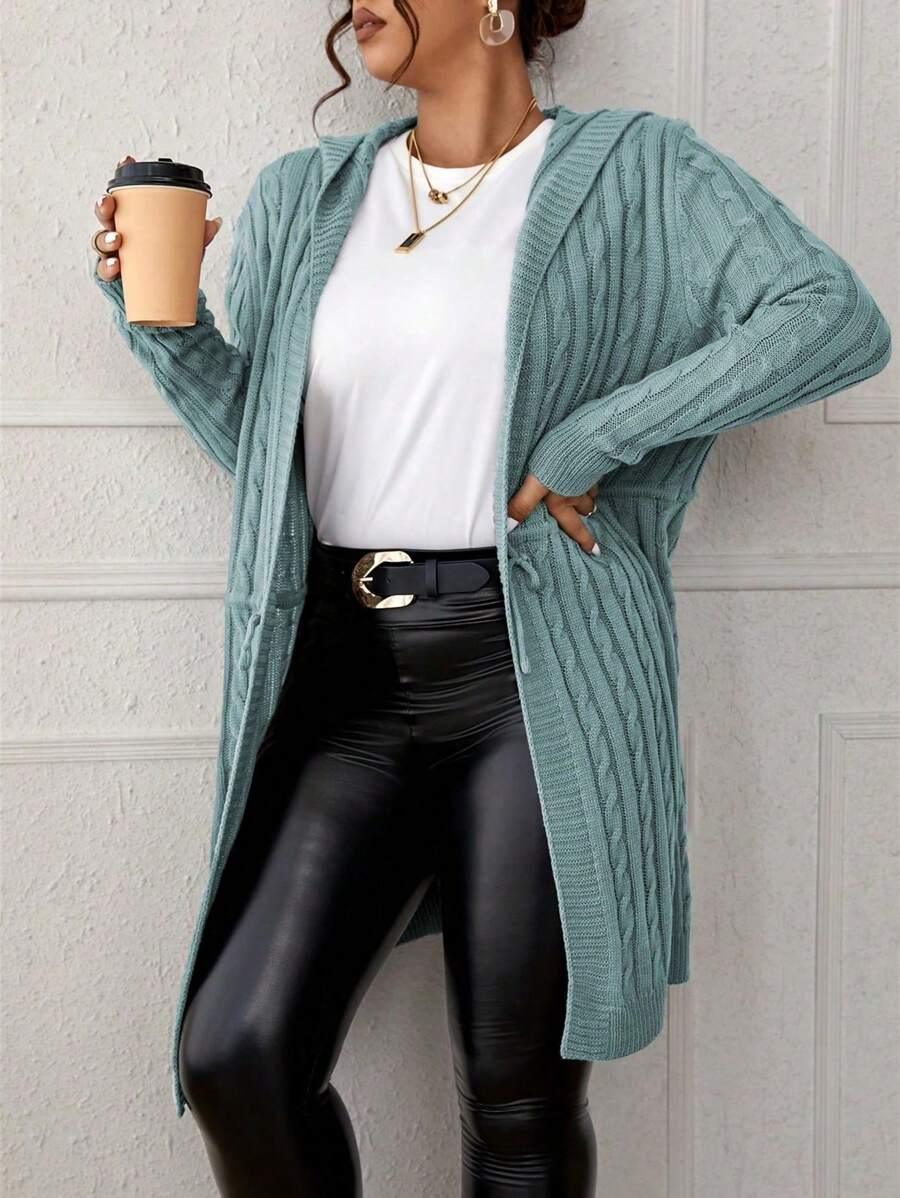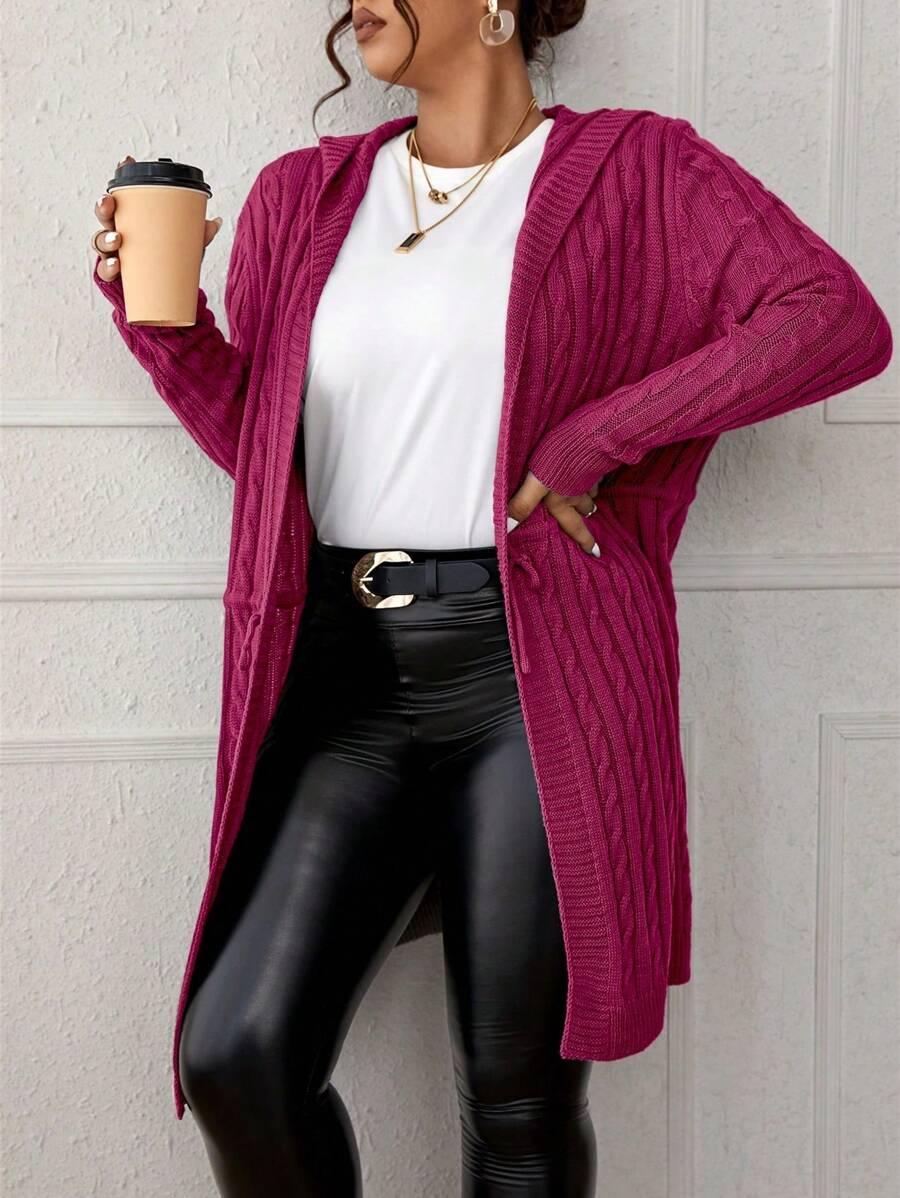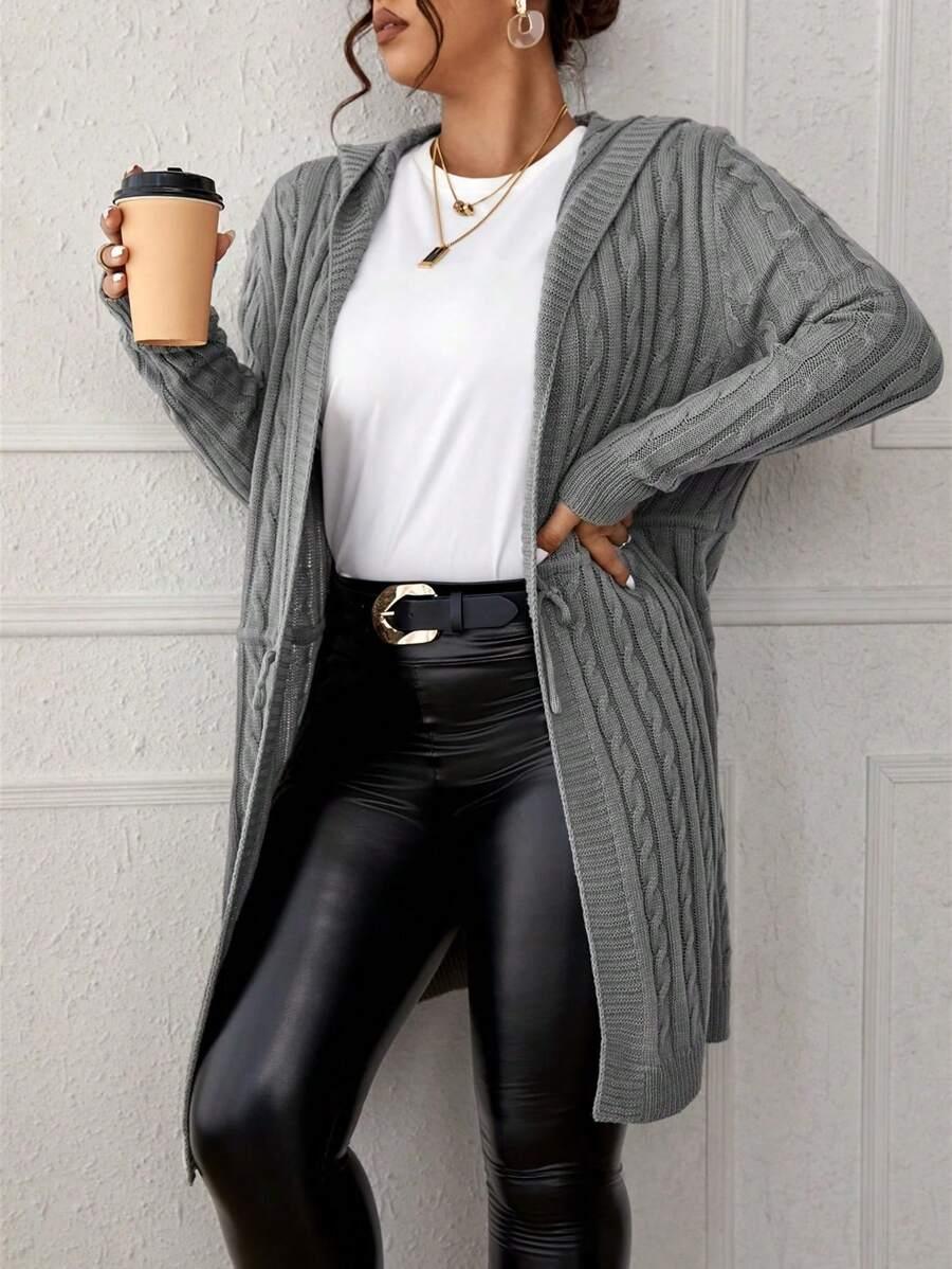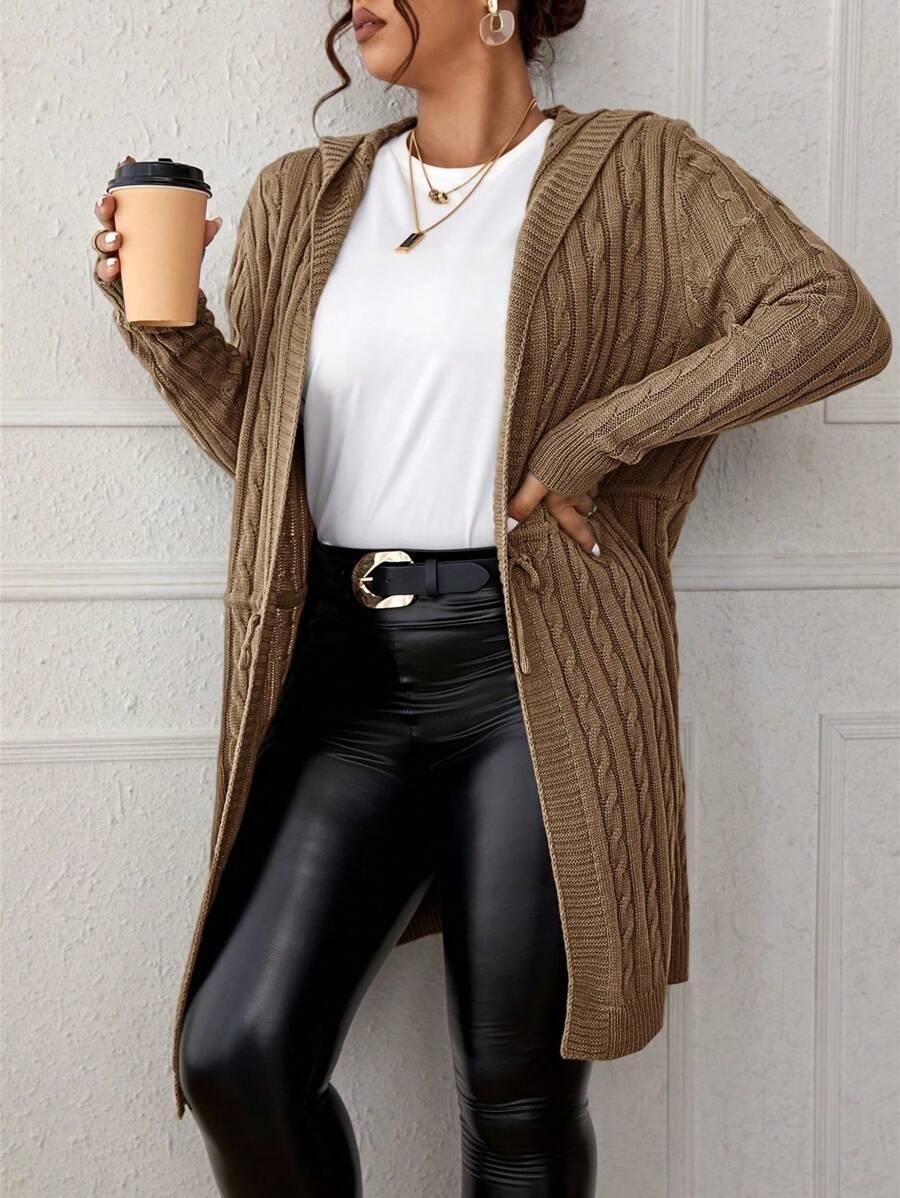 The drawstring cable knit cardigan gives structure and softness in one look. With a cable knit sweater design and hooded knit cardigan style this piece is functional year-round. From long sleeve cardigan shape to acrylic knit cardigan fabric the details support easy movement. Whether worn during outdoor strolls or indoor days it becomes a flexible wardrobe staple. Choose this regular fit jacket as your go-to during seasonal shifts. Pair it with everyday basics or style it with boots and scarves. Make comfort simple without losing clean structure.