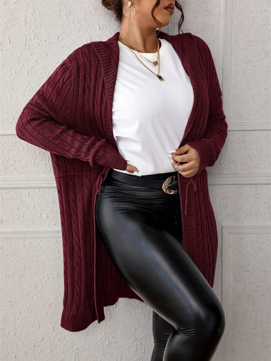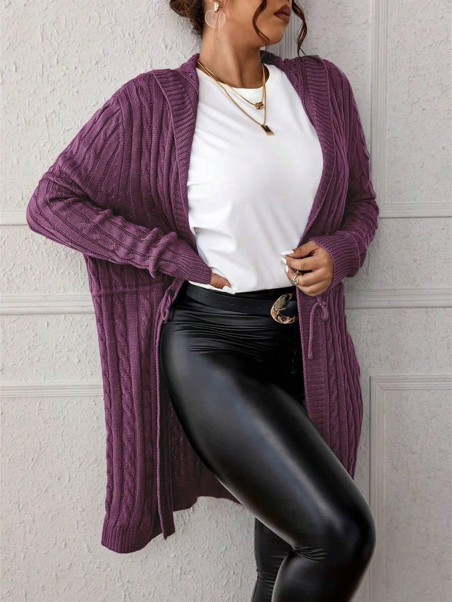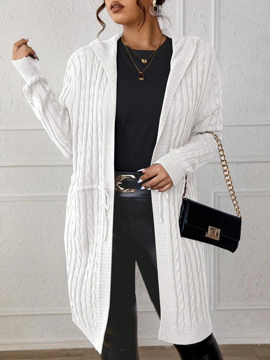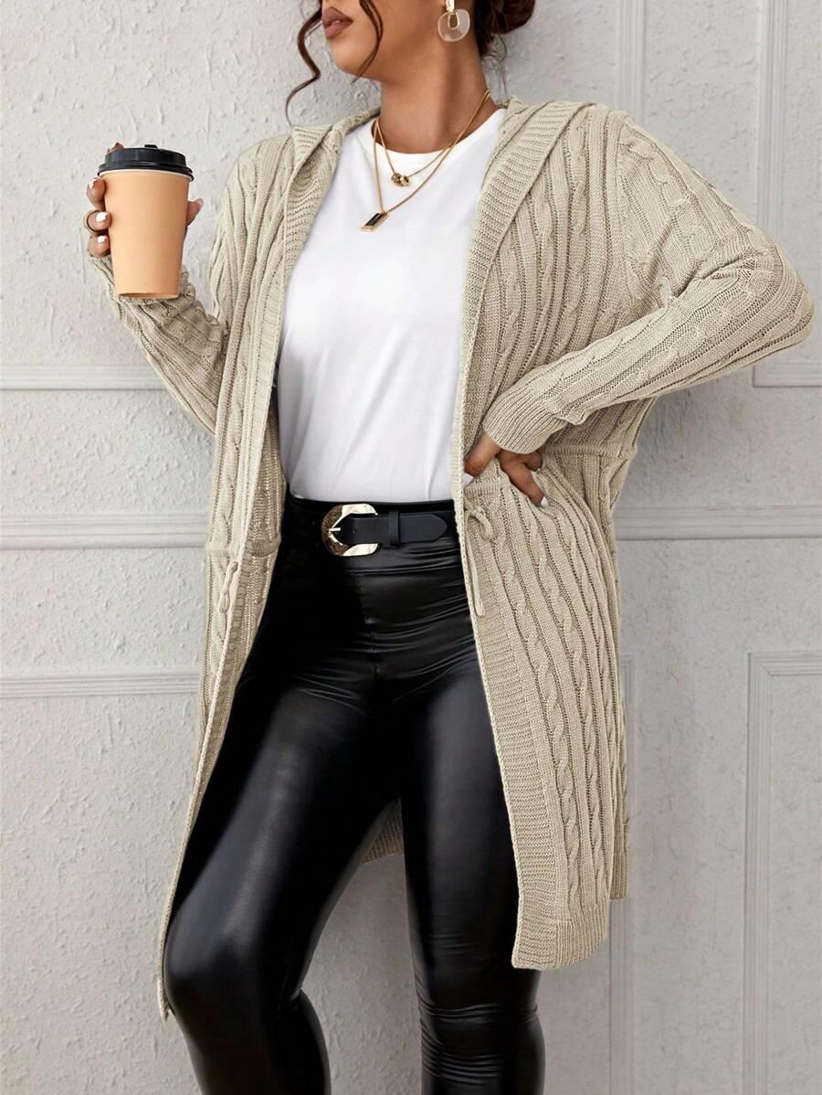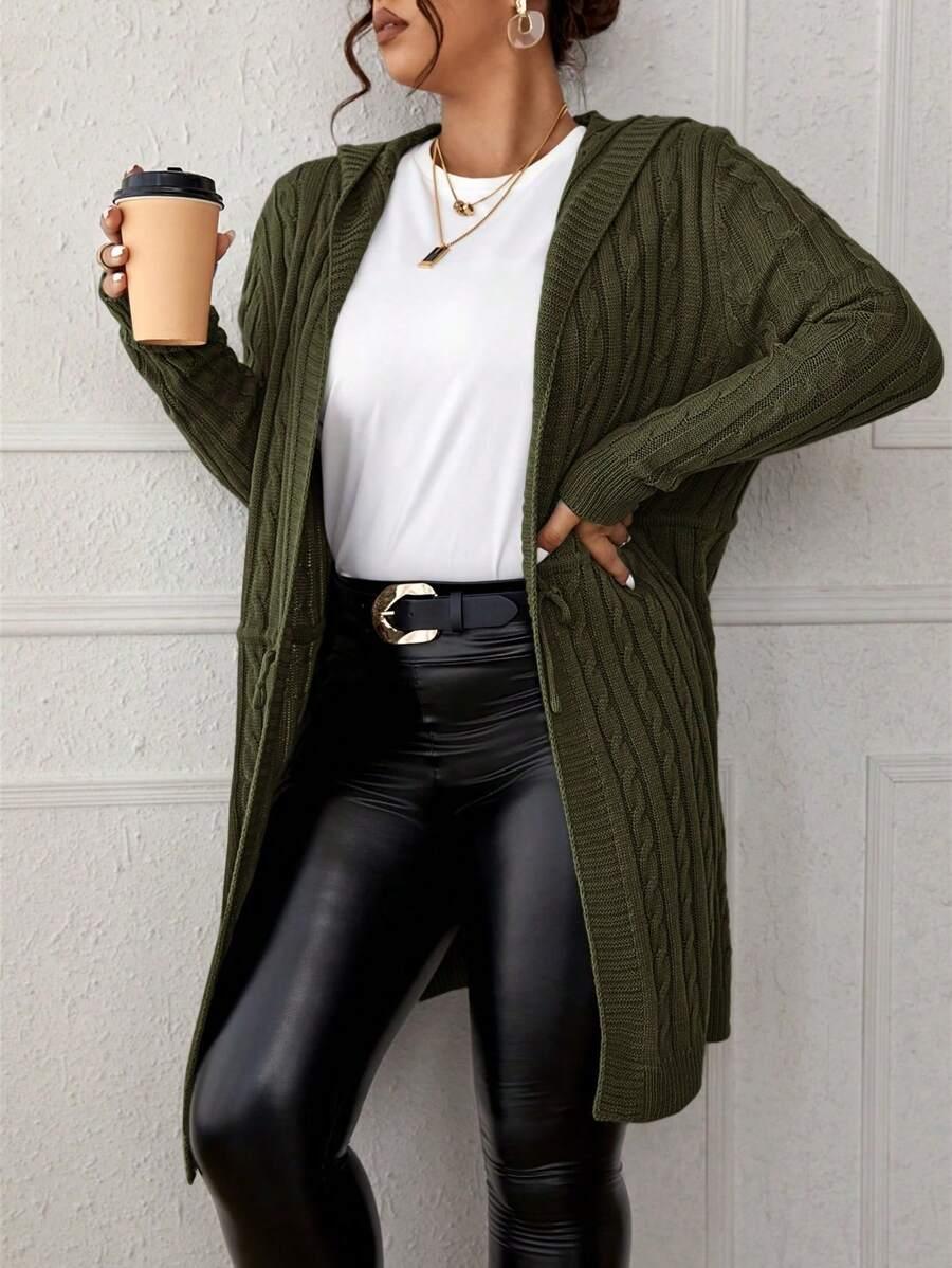 The drawstring cable knit cardigan gives structure and softness in one look. With a cable knit sweater design and hooded knit cardigan style this piece is functional year-round. From long sleeve cardigan shape to acrylic knit cardigan fabric the details support easy movement. Whether worn during outdoor strolls or indoor days it becomes a flexible wardrobe staple. Choose this regular fit jacket as your go-to during seasonal shifts. Pair it with everyday basics or style it with boots and scarves. Make comfort simple without losing clean structure.