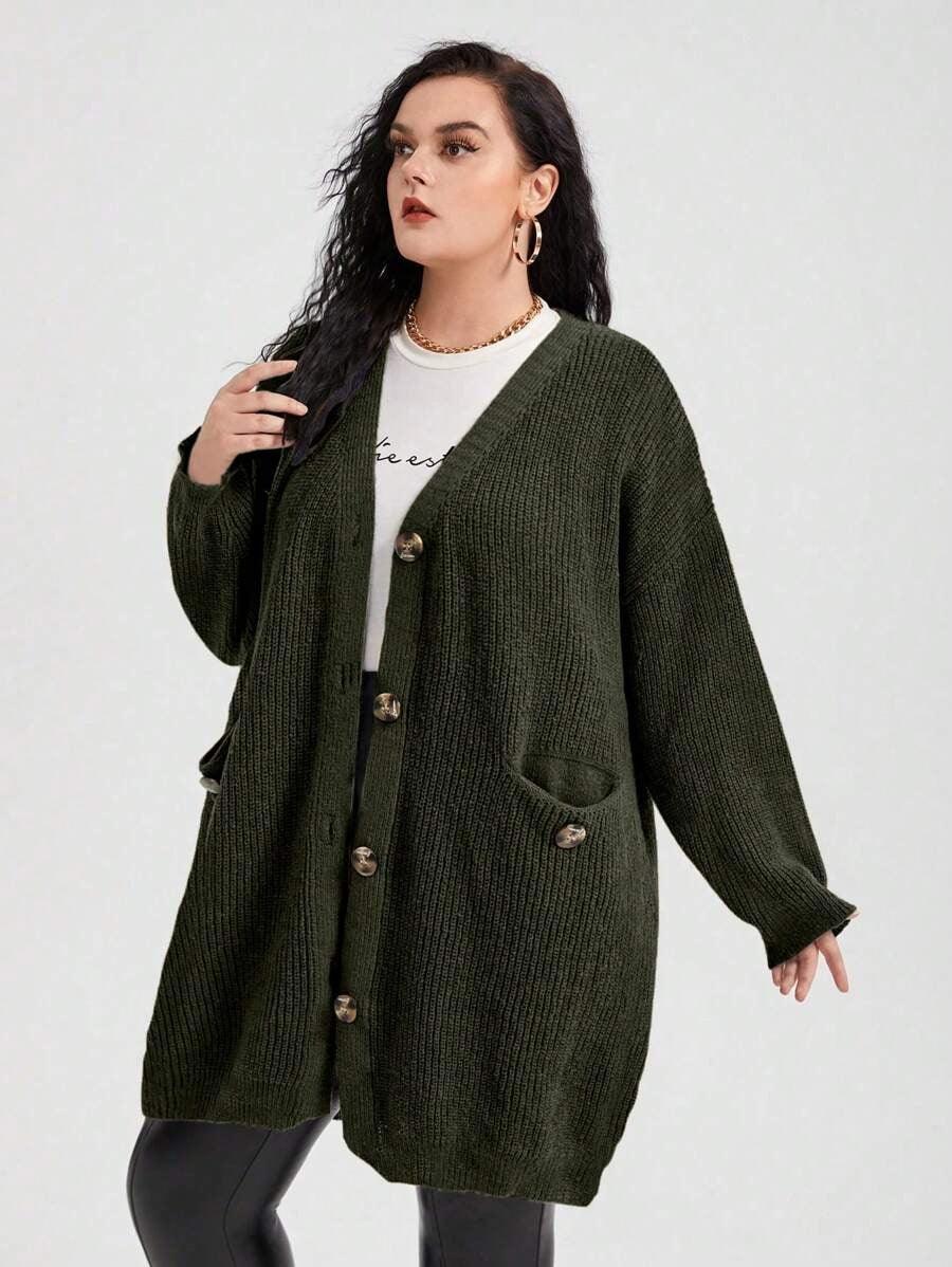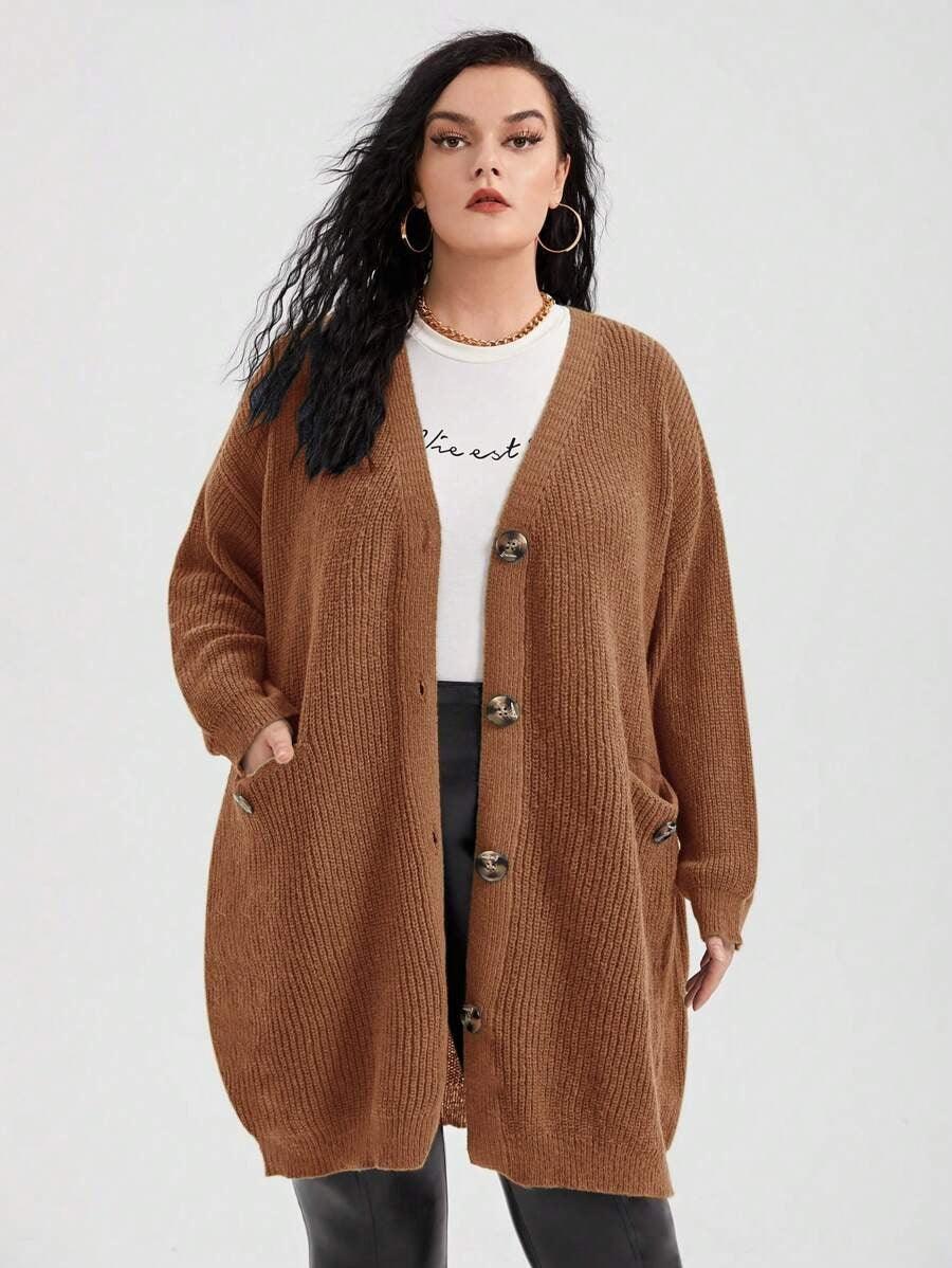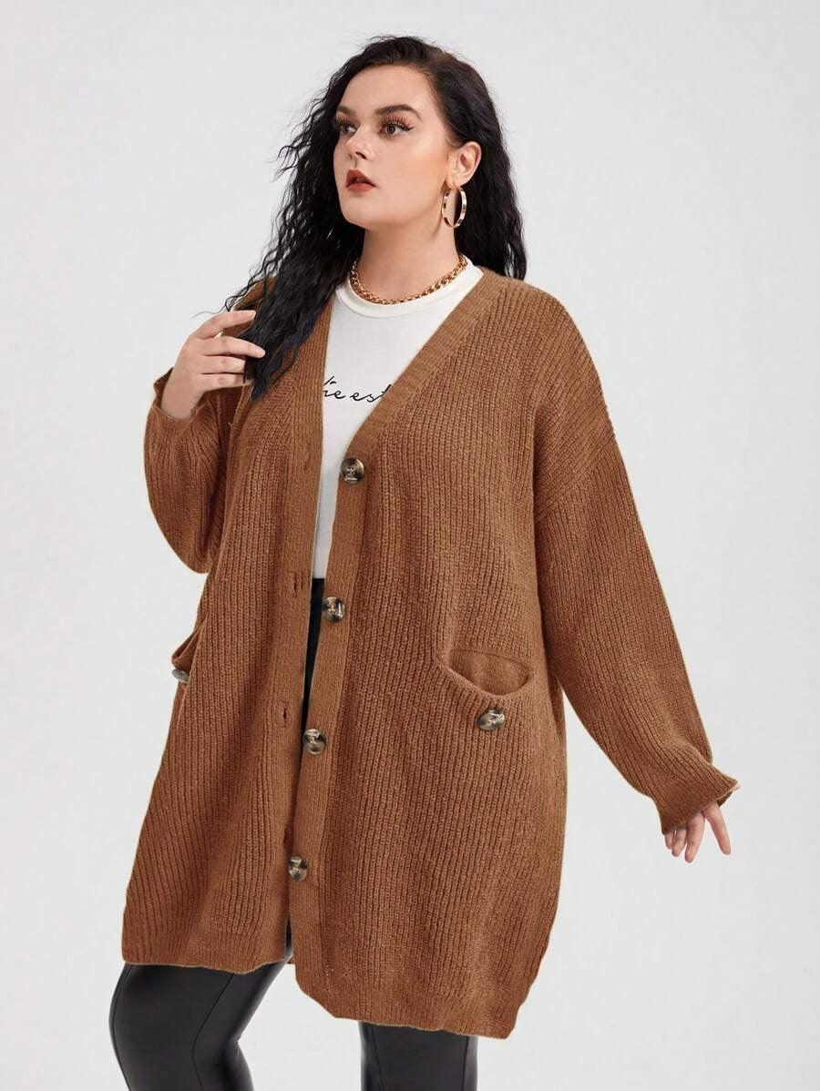 The plain surface, button accents, and convenient pockets contribute to flexibility and functionality, making the Drop Pocket Patched Cardigan suitable for informal outfits during mild weather. Whether layered over shirts, tops, or styled with trousers or jeans, this cardigan offers comfort, structure, and practicality for daily wear.
